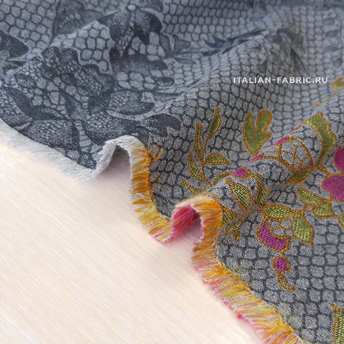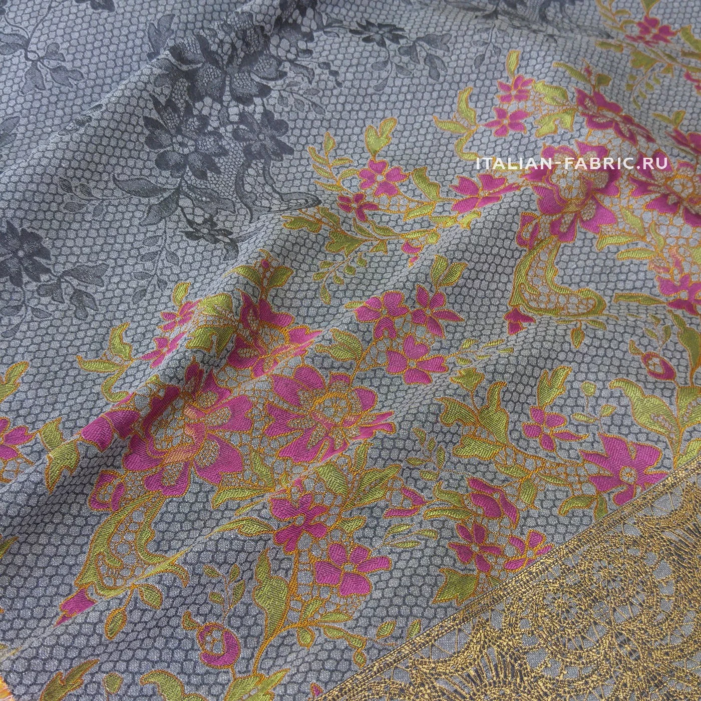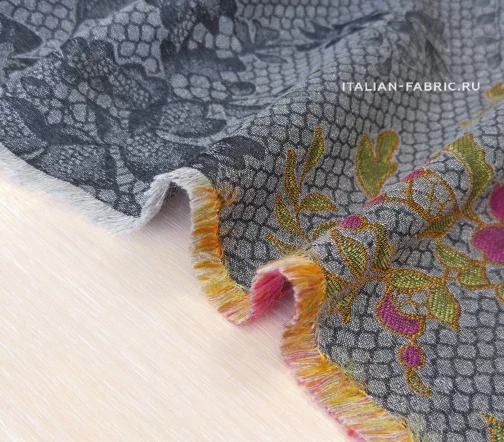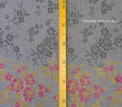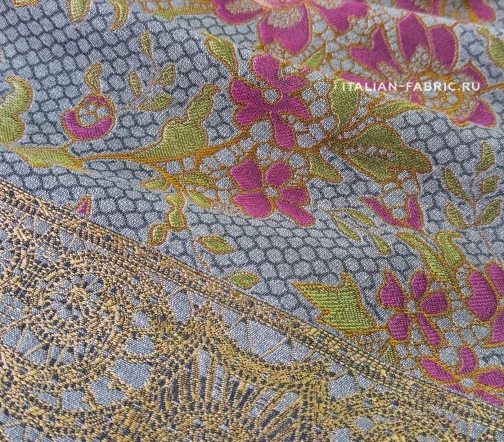 Размер купона: высота - 126 см, шир. - 150см. Основной фон- темно-серый. Кайма цвета бронзы. Нарядные костюмы, пальто, тренчи!