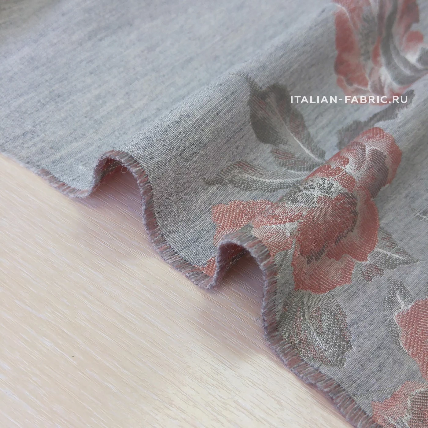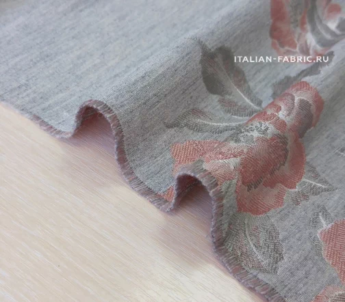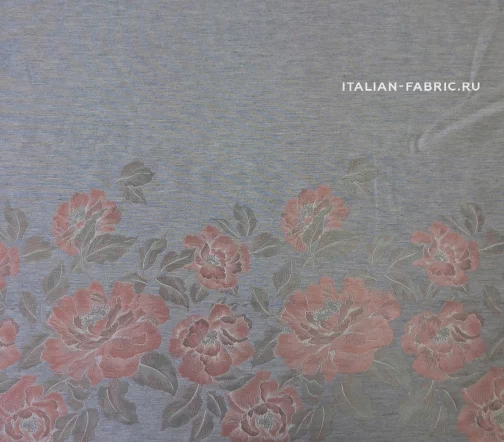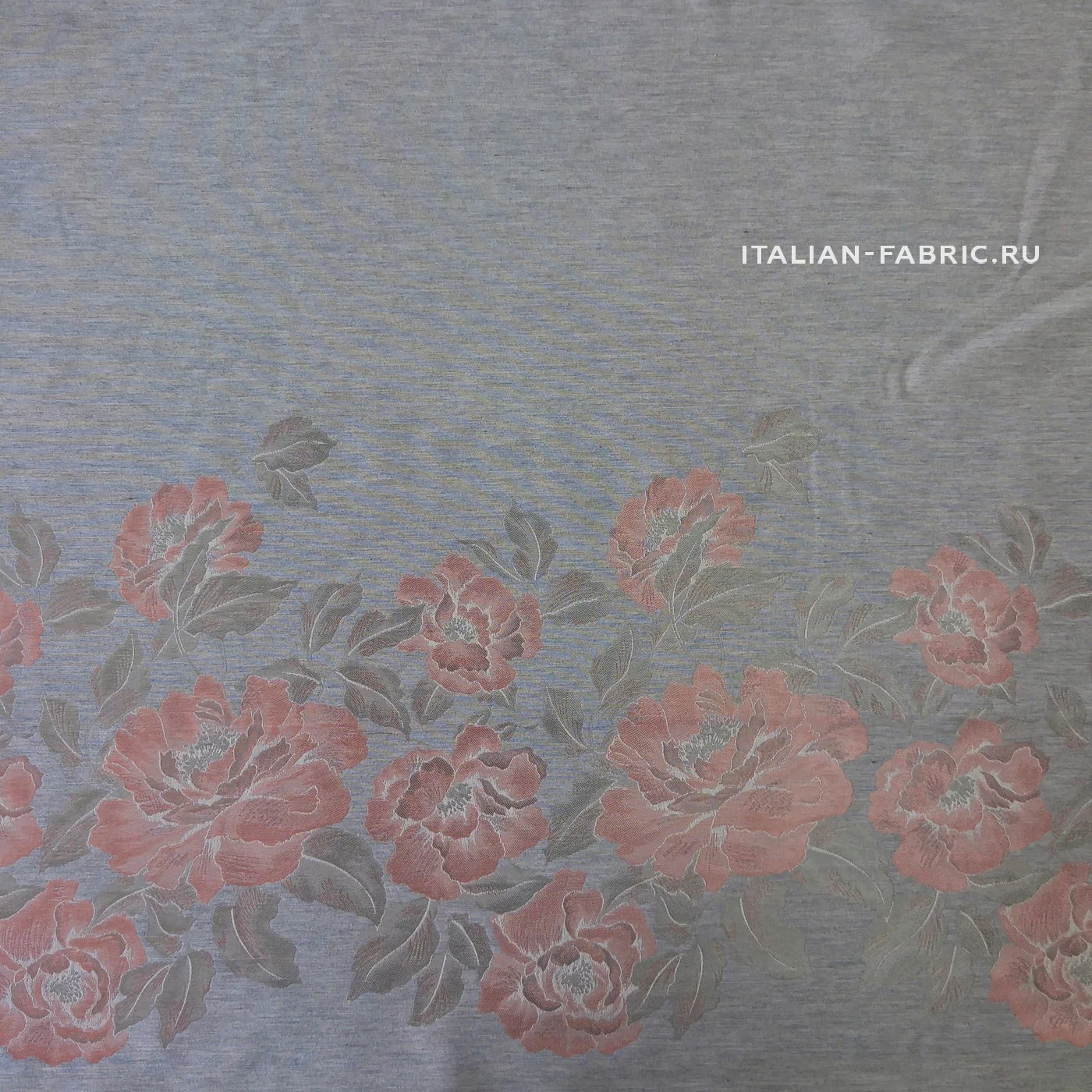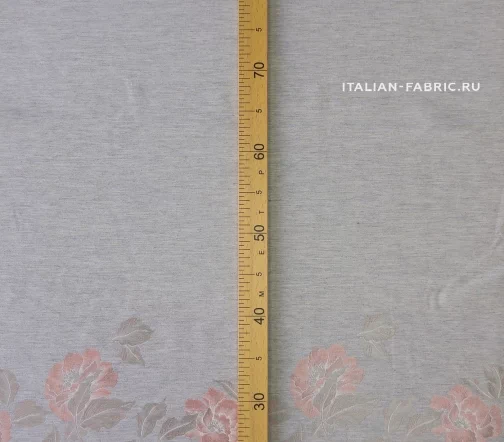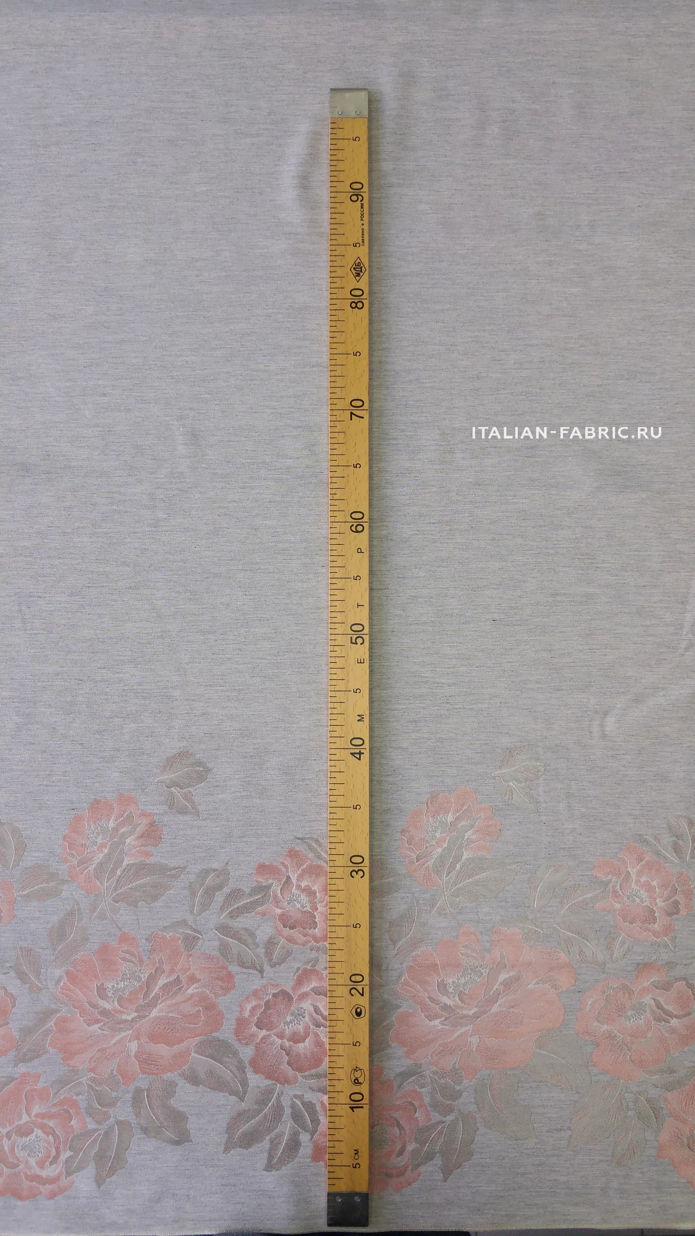 Размер купона: высота 115см, ширина 150см. Кайма 40см. Основной фон серый, принт нежный, розово-бежевый.