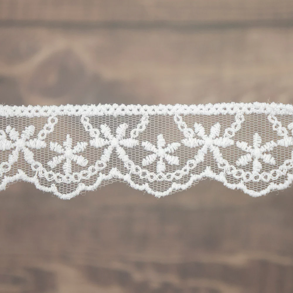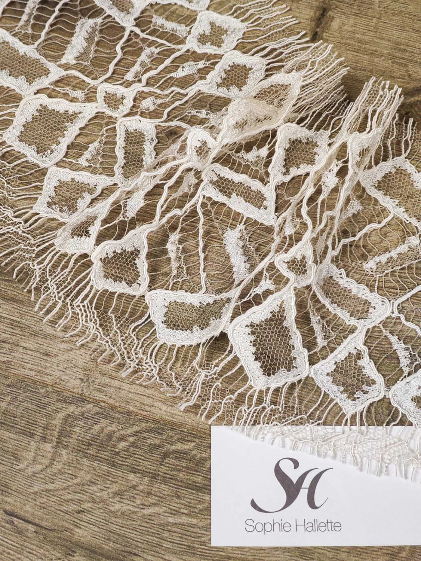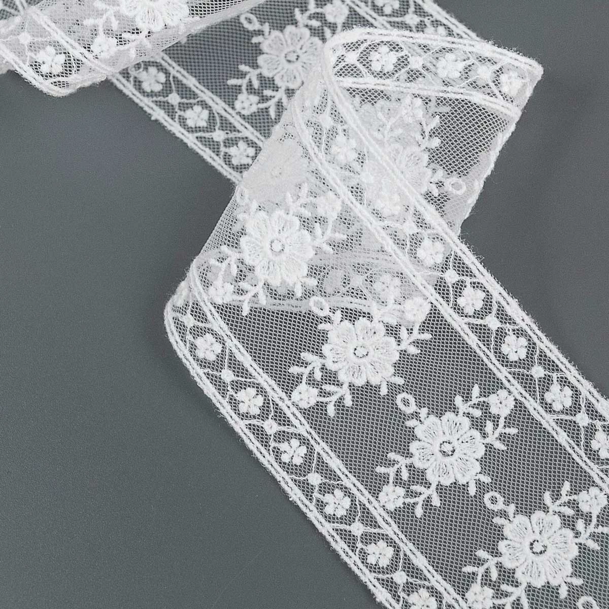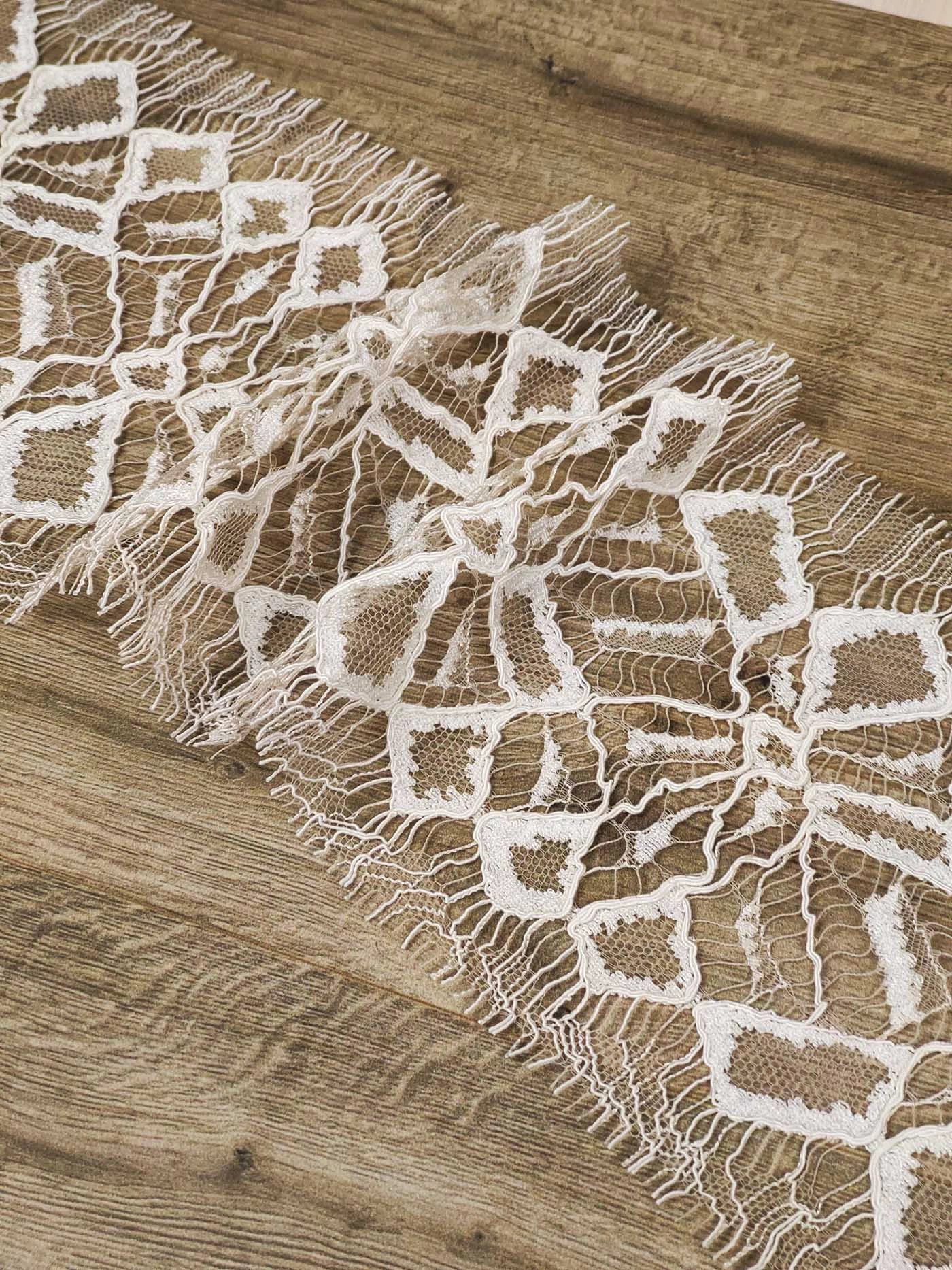 Изысканно-нежное испанское кружево, созданное современными дизайнерами по традиционным старинным рисункам и в традициях кружевоплетения высокой моды. Изготовлено машинным способом, при этом имеет вид тонкой ручной работы.