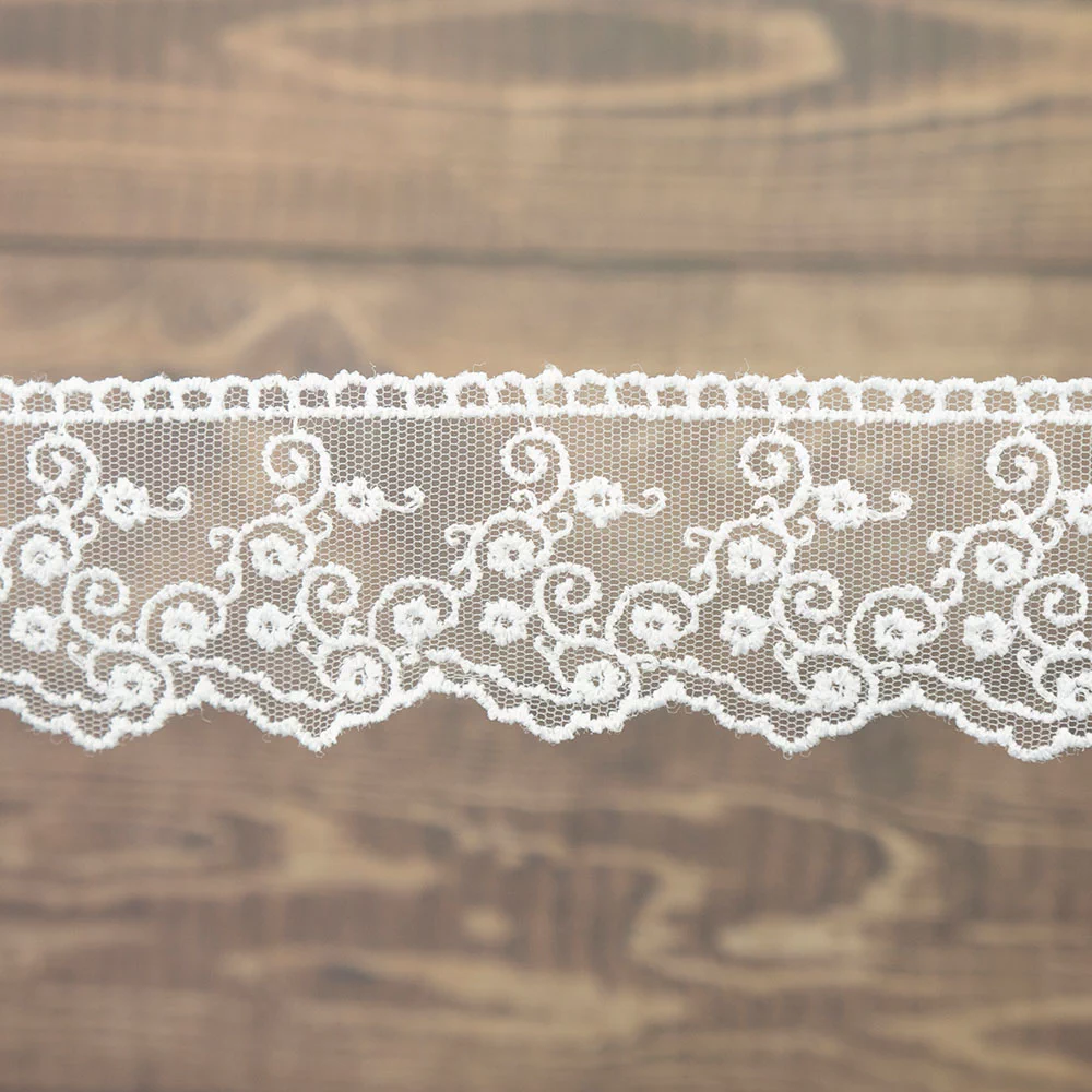 Изысканно-нежное испанское кружево, созданное современными дизайнерами по традиционным старинным рисункам и в традициях кружевоплетения высокой моды. Изготовлено машинным способом, при этом имеет вид тонкой ручной работы.