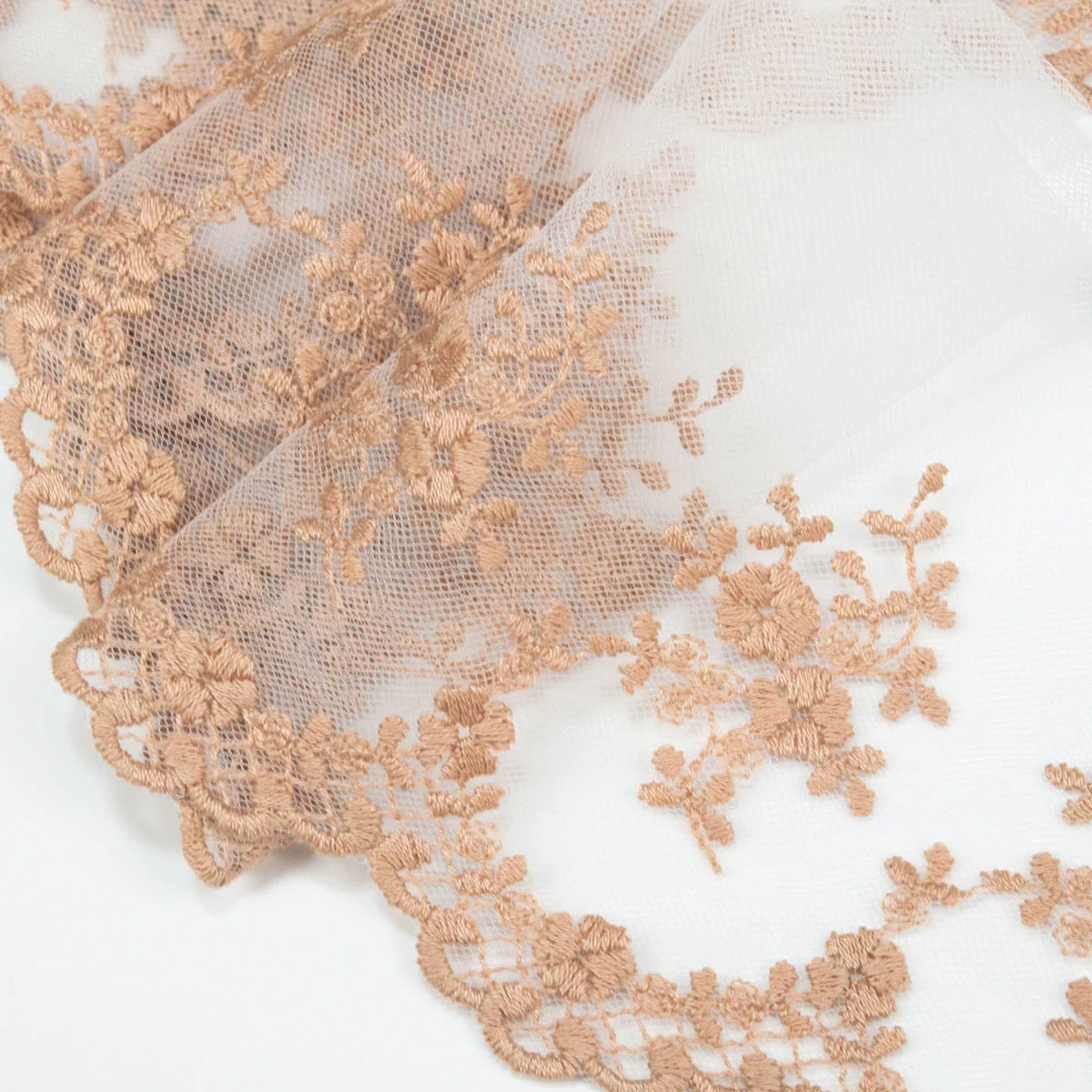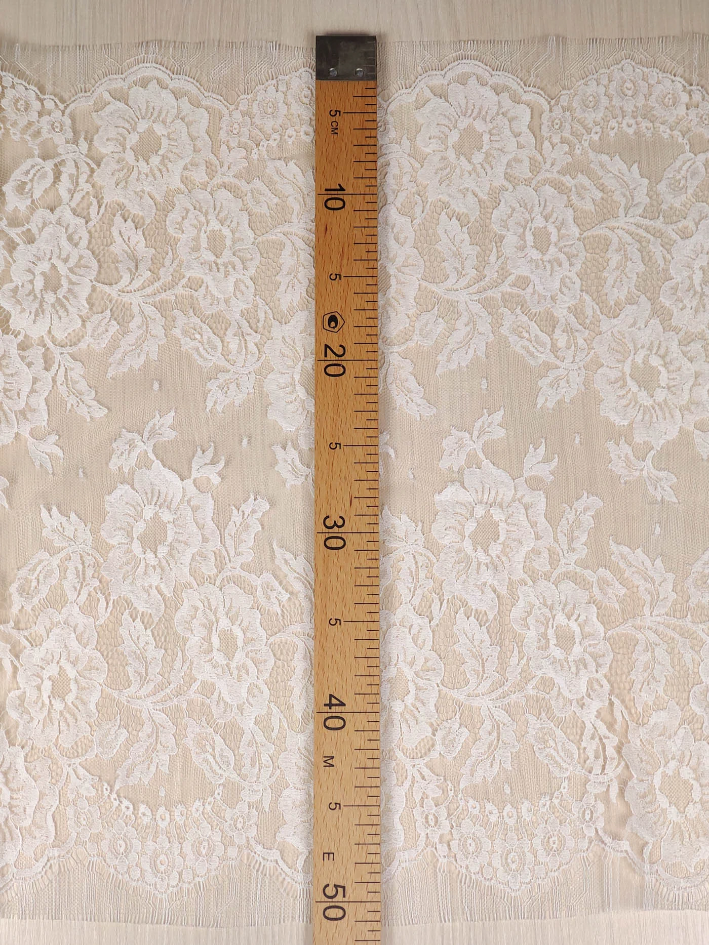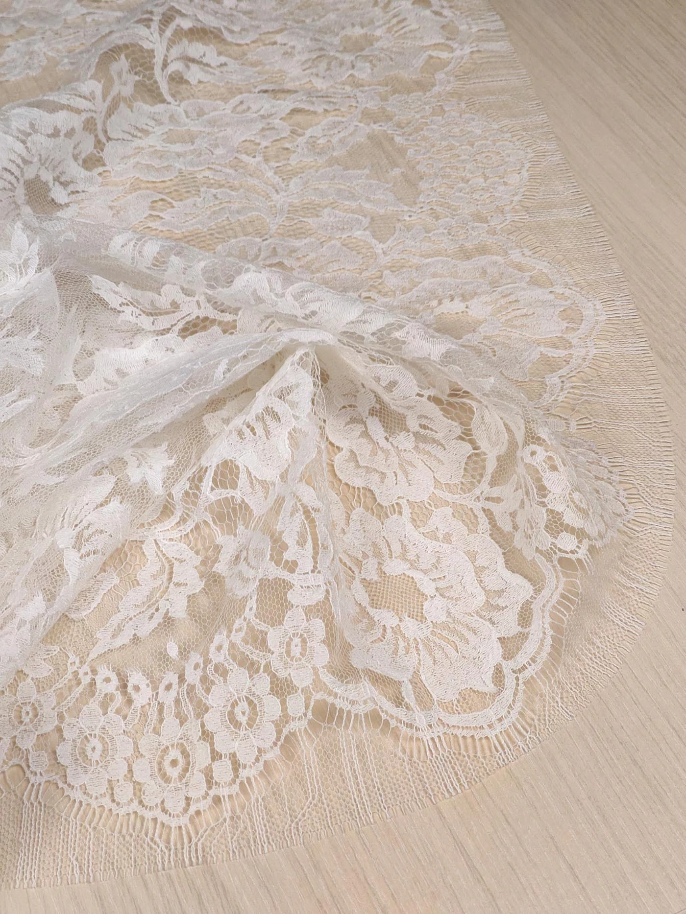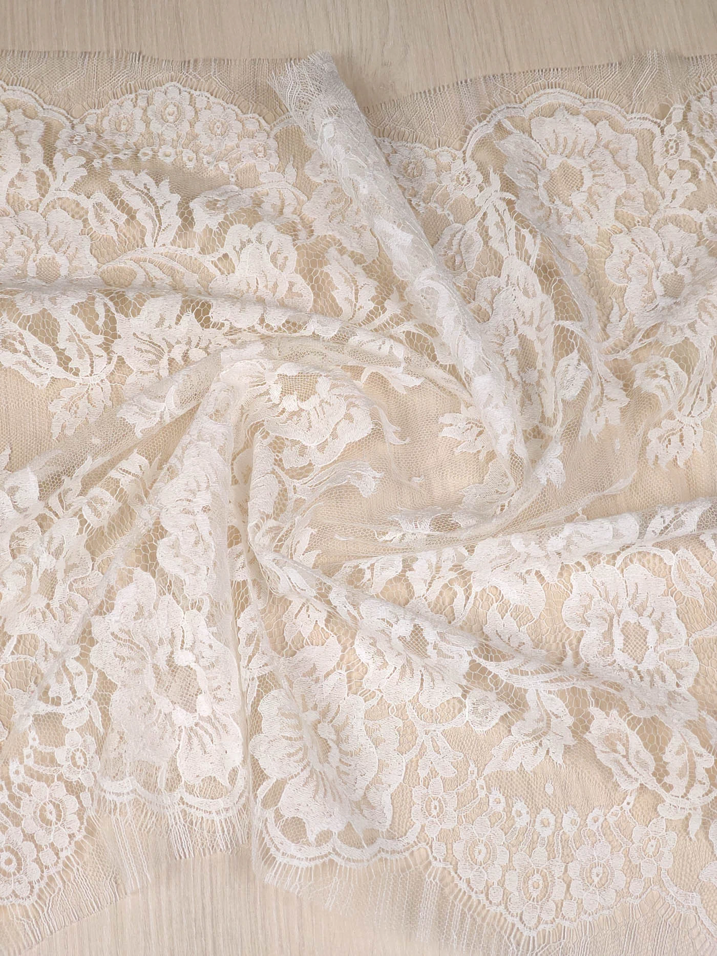 Изысканно-нежное испанское кружево, созданное современными дизайнерами по традиционным старинным рисункам и в традициях кружевоплетения высокой моды. Изготовлено машинным способом, при этом имеет вид тонкой ручной работы.