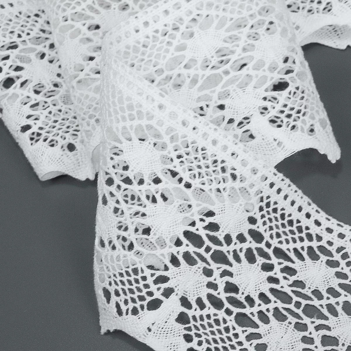 Изысканно-нежное испанское кружево, созданное современными дизайнерами по традиционным старинным рисункам и в традициях кружевоплетения высокой моды. Изготовлено машинным способом, при этом имеет вид тонкой ручной работы.