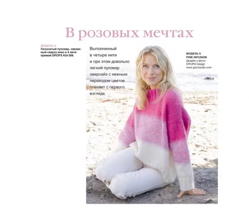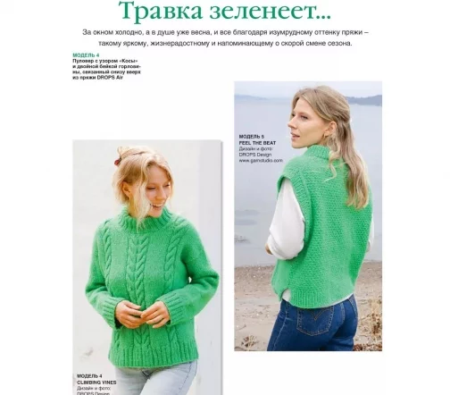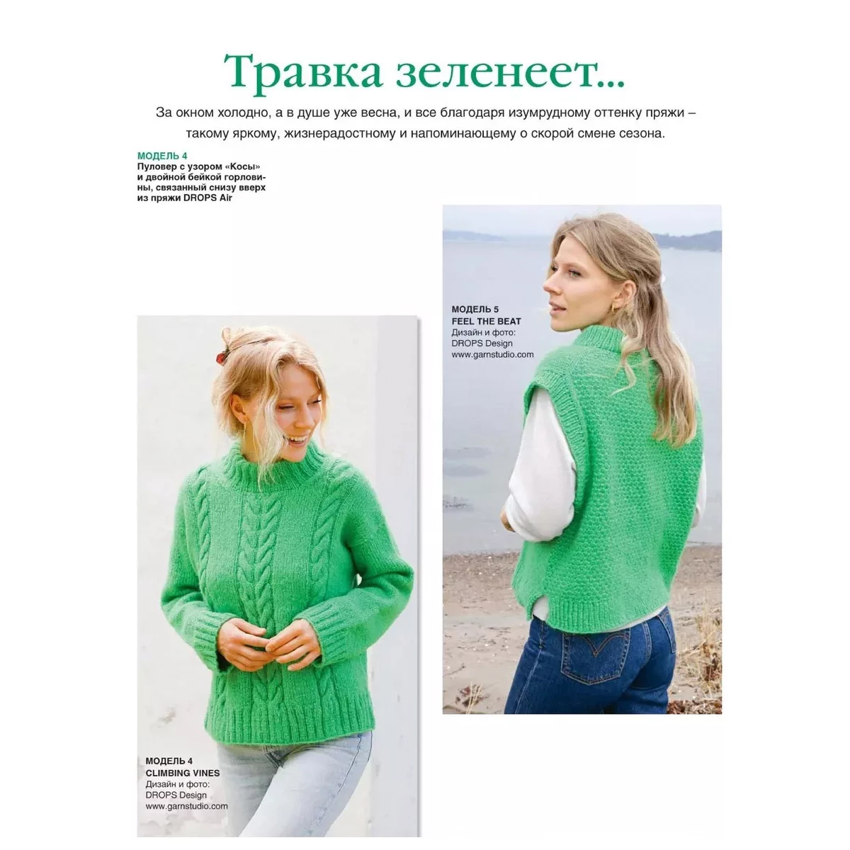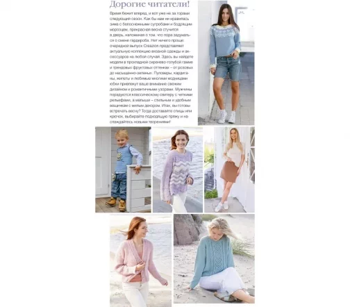Вы найдете модели в прохладной сиренево-голубой гамме и трендовых фруктовых оттенках - от розовых до насыщенно-зеленых. Пуловеры, кардиганы, жилеты и любимые многими модницами юбки привлекут Ваше внимание свежим дизайном и романтическими узорами.