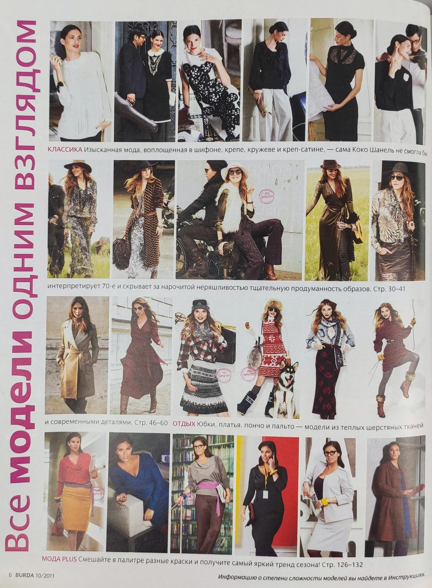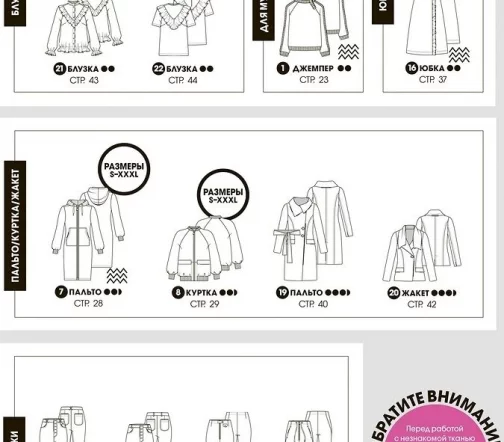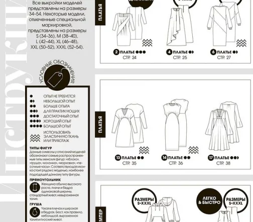Все выкройки моделей в журнале представлены на размеры 34−54.