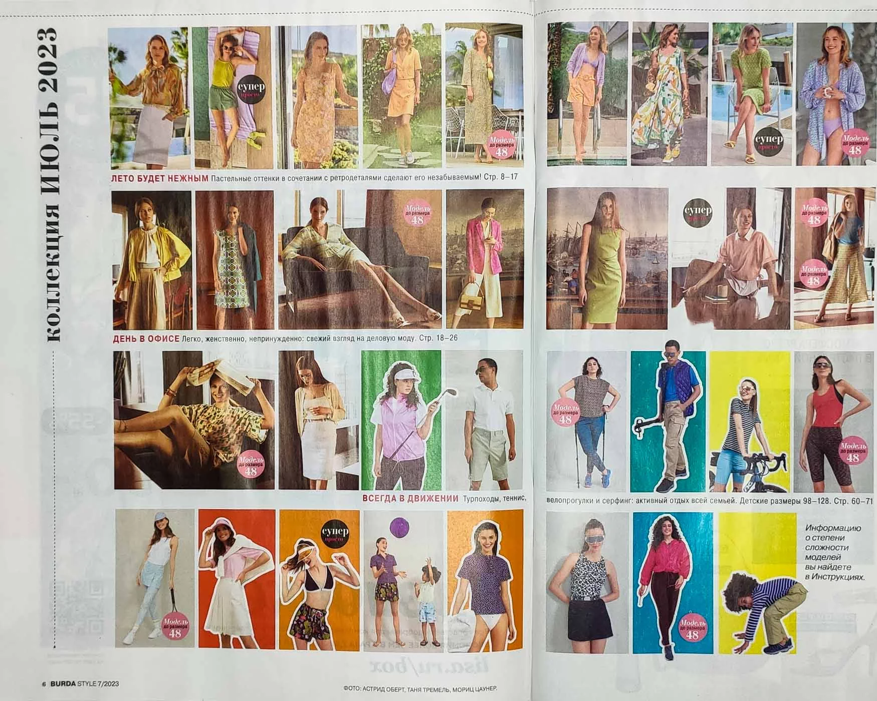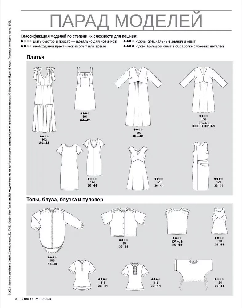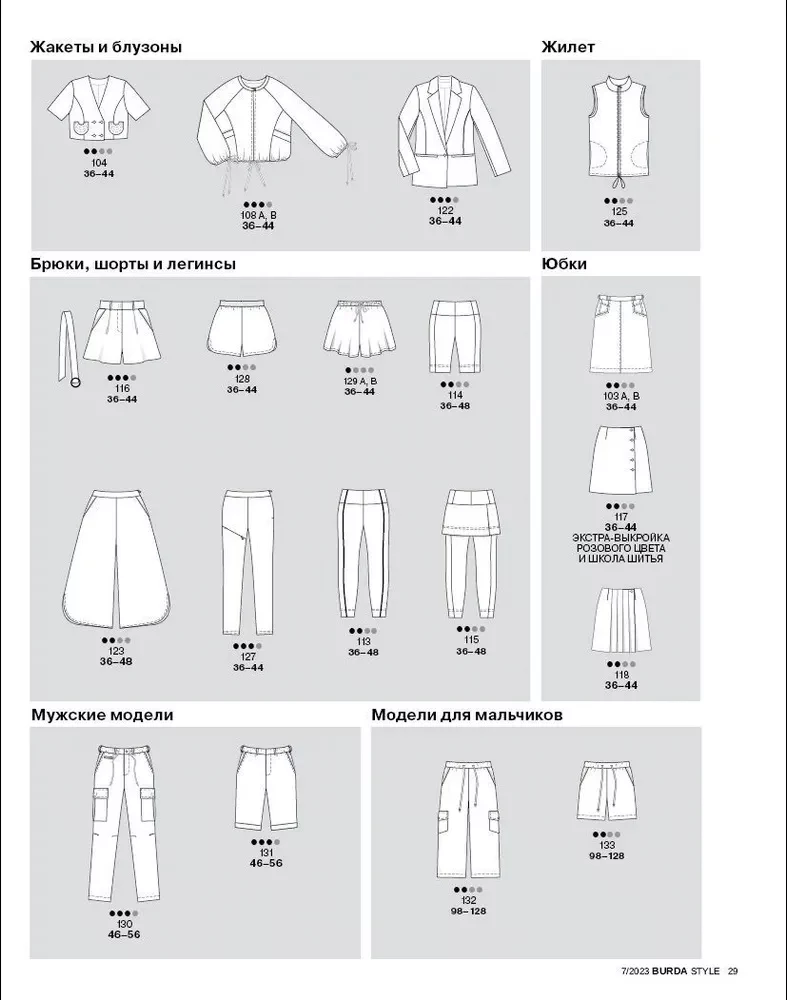 Все выкройки моделей в журнале представлены на размеры 34−54.