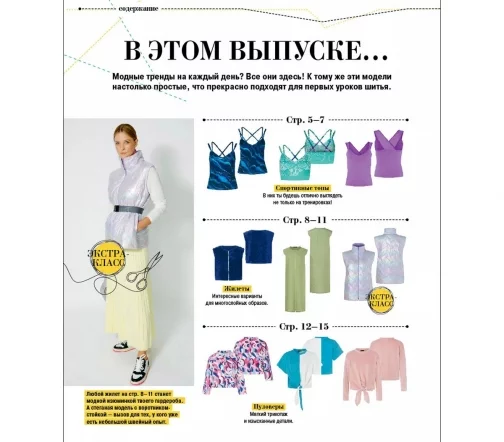 В номере: городская мода в спортивном стиле. Все модели настолько простые, что прекрасно подходят для первых уроков шитья.