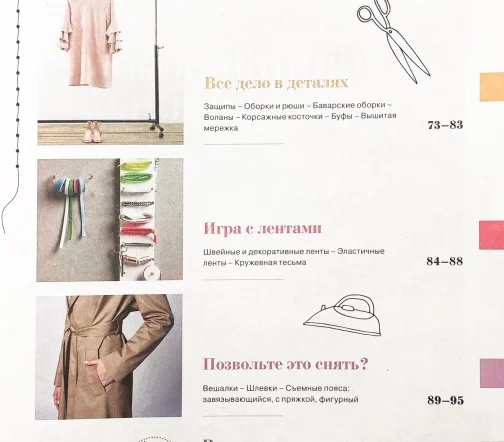 Во второй части, которая называется «Экологичный подход», вы найдете море полезной информации о различных видах тканей и уходом за ними, узнаете что такое "апсайклинг" и получите много советов по ремонту одежду вручную и на швейной машинке, а также о том, как сделать складки, оборки, воланы, буфы, шлёвки.