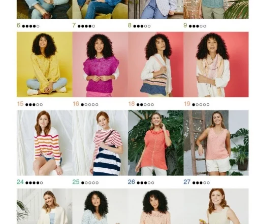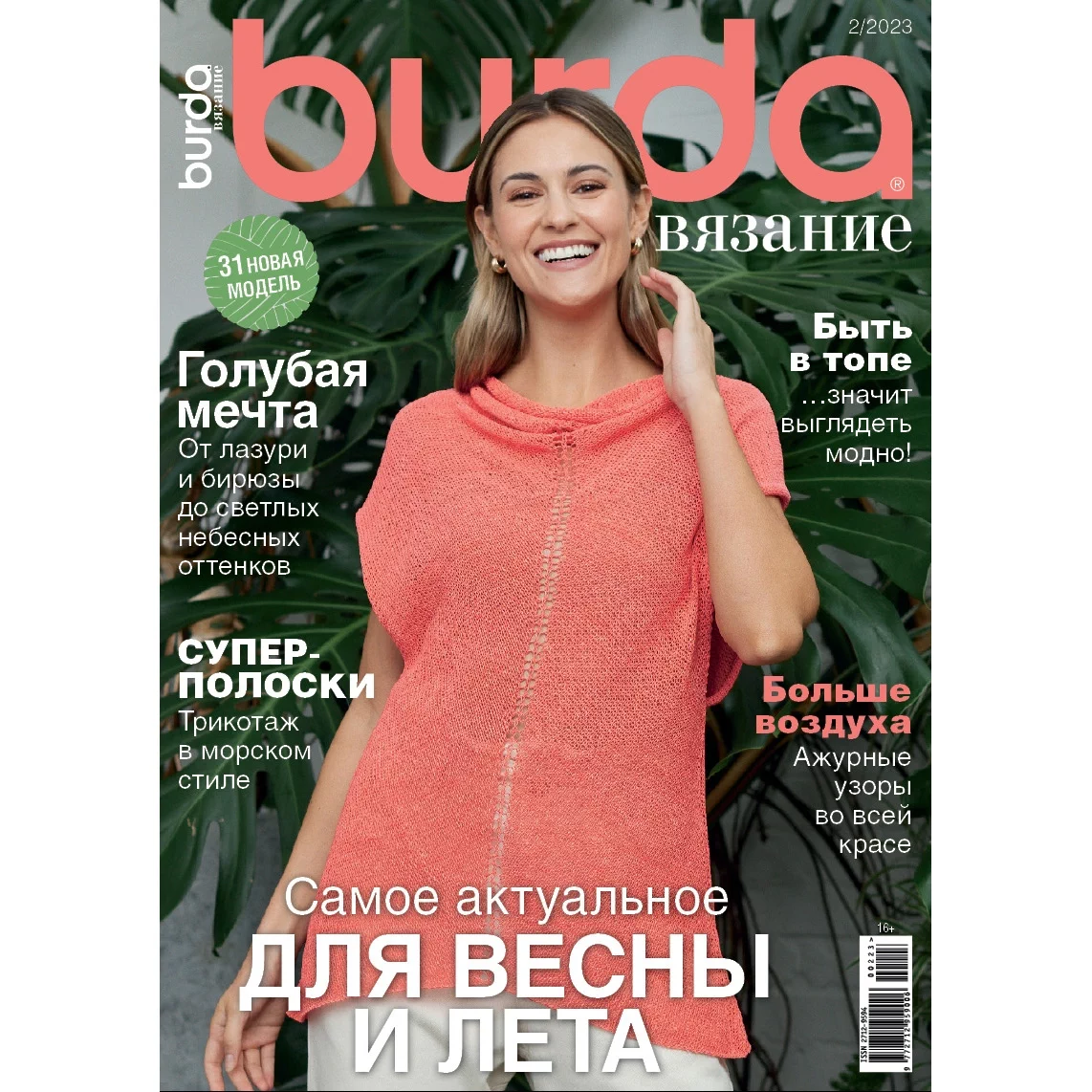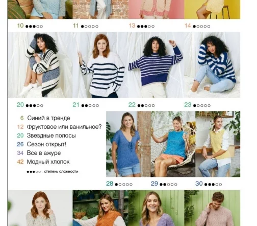 В новом выпуске представлены самые актуальные модели для весенне-летнего сезона от ведущих европейских дизайнеров: полосатые пуловеры в морском стиле, ажурные топы и жакеты из мягкой натуральной пряжи, модные пулундеры и жилеты с интересными структурами, а также симпатичные аксессуары, дополняющие образ. Любительниц рукоделия порадует как многообразие фасонов, так и богатая цветовая гамма: от сочных фруктовых и теплых пастельных оттенков до освежающих сине-голубых тонов. В этом выпуске мы предлагаем и две мужские модели с оригинальными узорами.