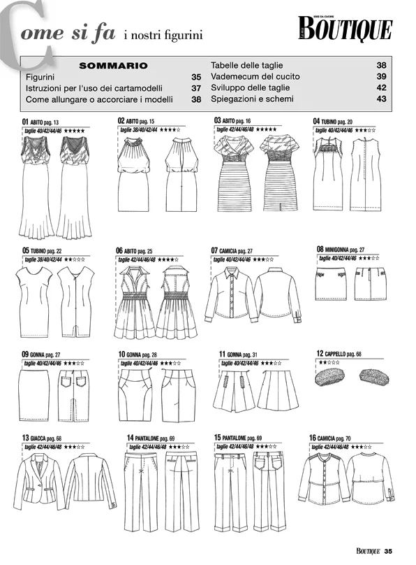 Журнал на итальянском языке! В каждом выпуске – около 40 моделей журнала La Mia Boutique, крупнейшего ежемесячного журнала о моде в Италии. Для моделей, в зависимости от рубрики, предлагаются выкройки размеров – с 38-го по 54-й (размеры IT). Также есть специальный раздел с актуальной модой для детей. Все модели сопровождаются выкройками и подробными инструкциями по шитью.