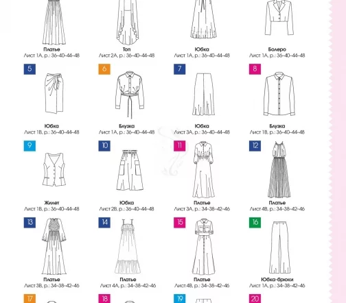 - Яркие сочетания: эффектная коллекция (брюки, блузки и платья);