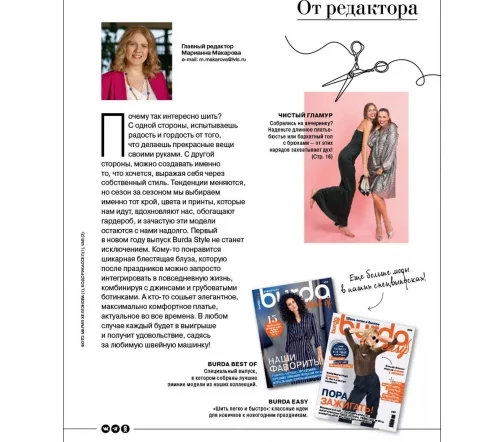 Burda Style (Бурда Стайл) - это европейская мода высокого класса. Издание с мировым именем, хорошо известное всем женщинам, которые хотят быть образцом безупречного вкуса для окружающих. На страницах журнала Burda - самые последние тенденции мировой моды, новости с европейских подиумов и советы по стилю.