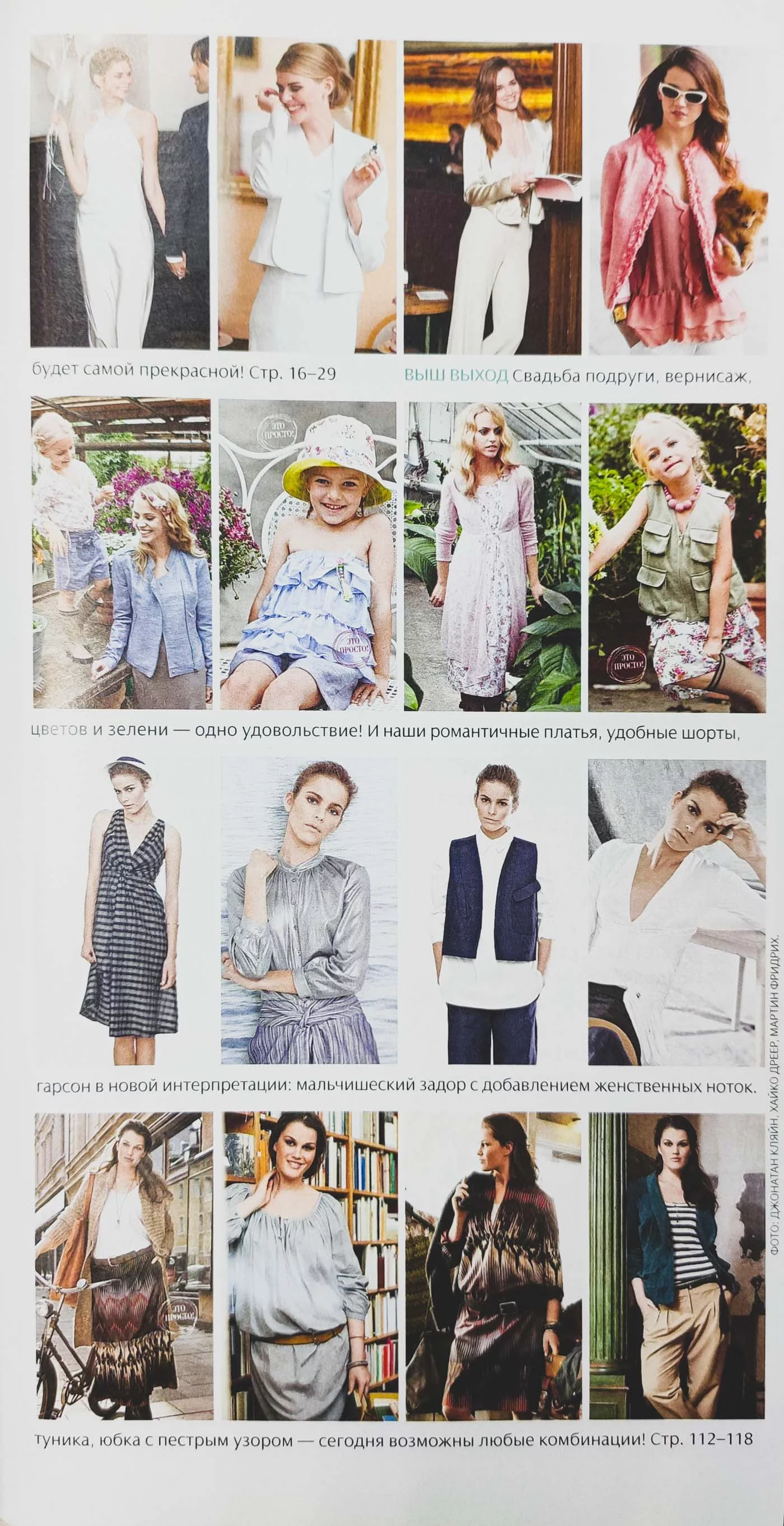 Женственные образы с нотой ретро в пастельных тонах. Легкие ткани и свежие тенденции в деловом дресс-коде. Бег, теннис, походы: спортивная одежда для всей семьи. Школа шитья: мини-юбка с асимметричной застежкой и обтяжными пуговицами; платье с глубоким V-вырезом.