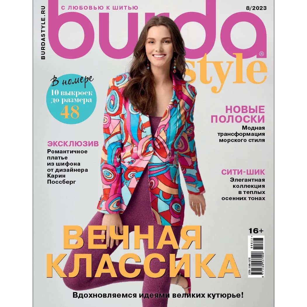 Журнал с выкройками Burda Style (Бурда Стайл) - это европейская мода высокого класса. Издание с мировым именем, хорошо известное всем женщинам, которые хотят быть образцом безупречного вкуса для окружающих. На страницах журнала Burda - самые последние тенденции мировой моды, новости с европейских подиумов и советы по стилю.