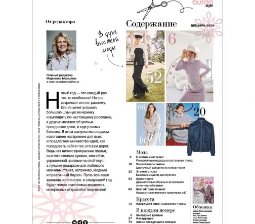 Burda Style (Бурда Стайл) - это европейская мода высокого класса. Издание с мировым именем, хорошо известное всем женщинам, которые хотят быть образцом безупречного вкуса для окружающих. На страницах журнала Burda - самые последние тенденции мировой моды, новости с европейских подиумов и советы по стилю.