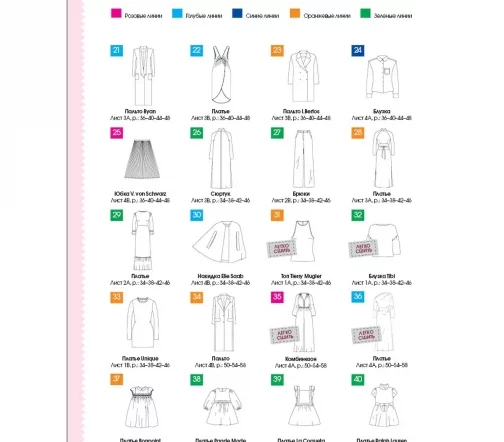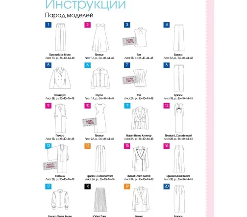 В каждом номере – около 40 женских моделей широкого размерного ряда, предназначенные для работы, праздничных выходов, отдыха и путешествий, а также модели для детей. Журнал содержит подробные инструкции по шитью и выкройки, обеспечивающие отличную посадку на фигуру.