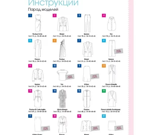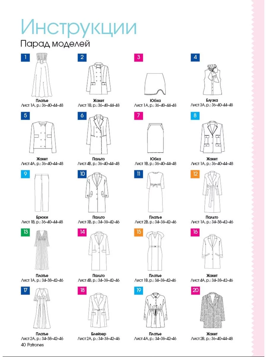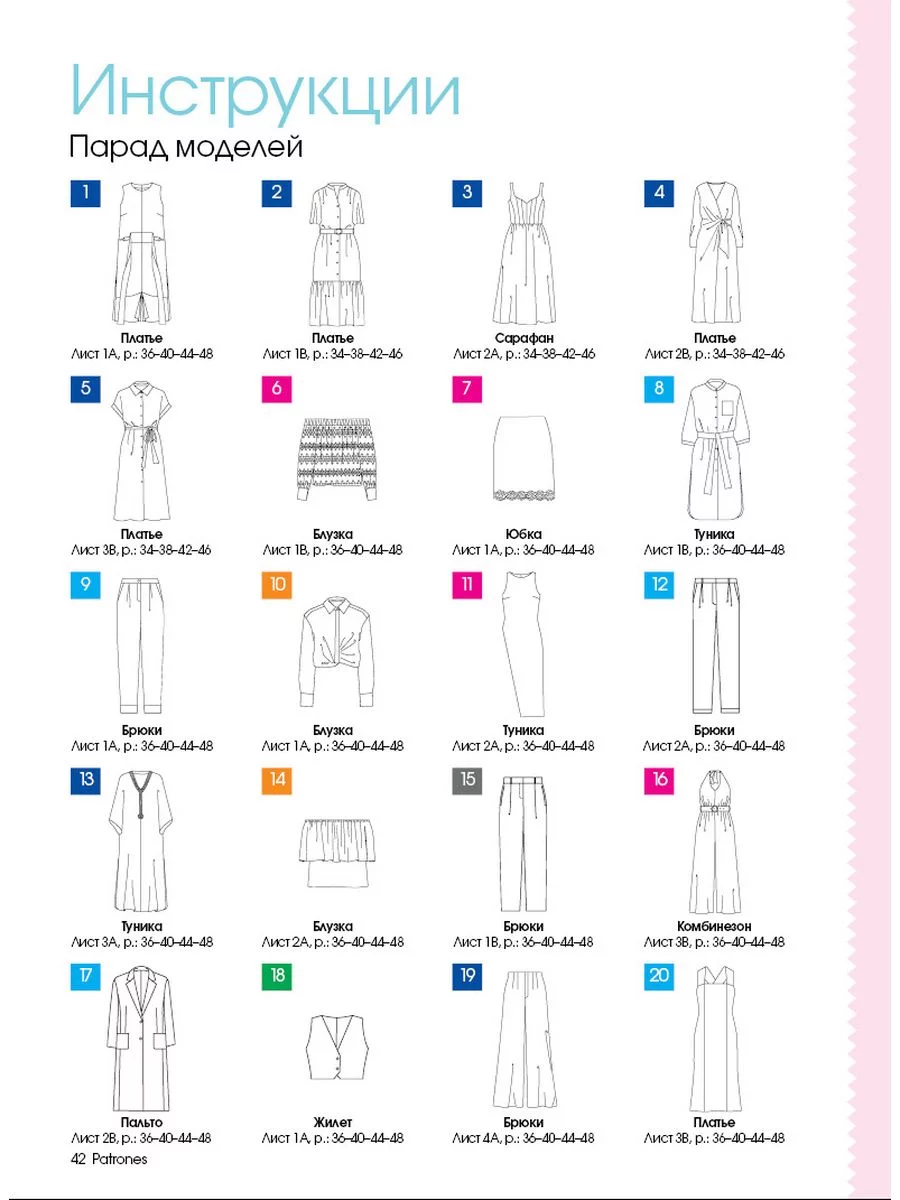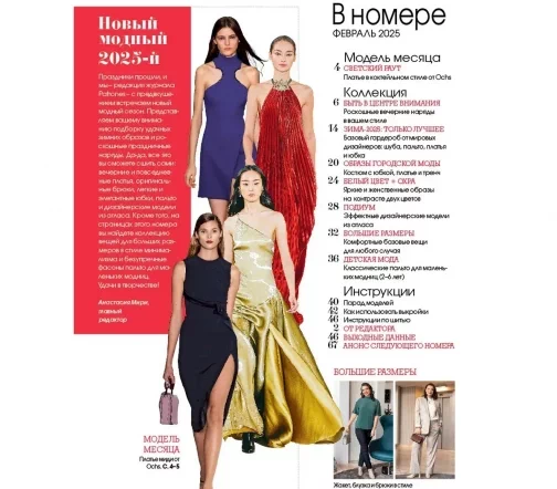 В каждом номере – около 40 женских моделей широкого размерного ряда, предназначенные для работы, праздничных выходов, отдыха и путешествий, а также модели для детей. Журнал содержит подробные инструкции по шитью и выкройки, обеспечивающие отличную посадку на фигуру.