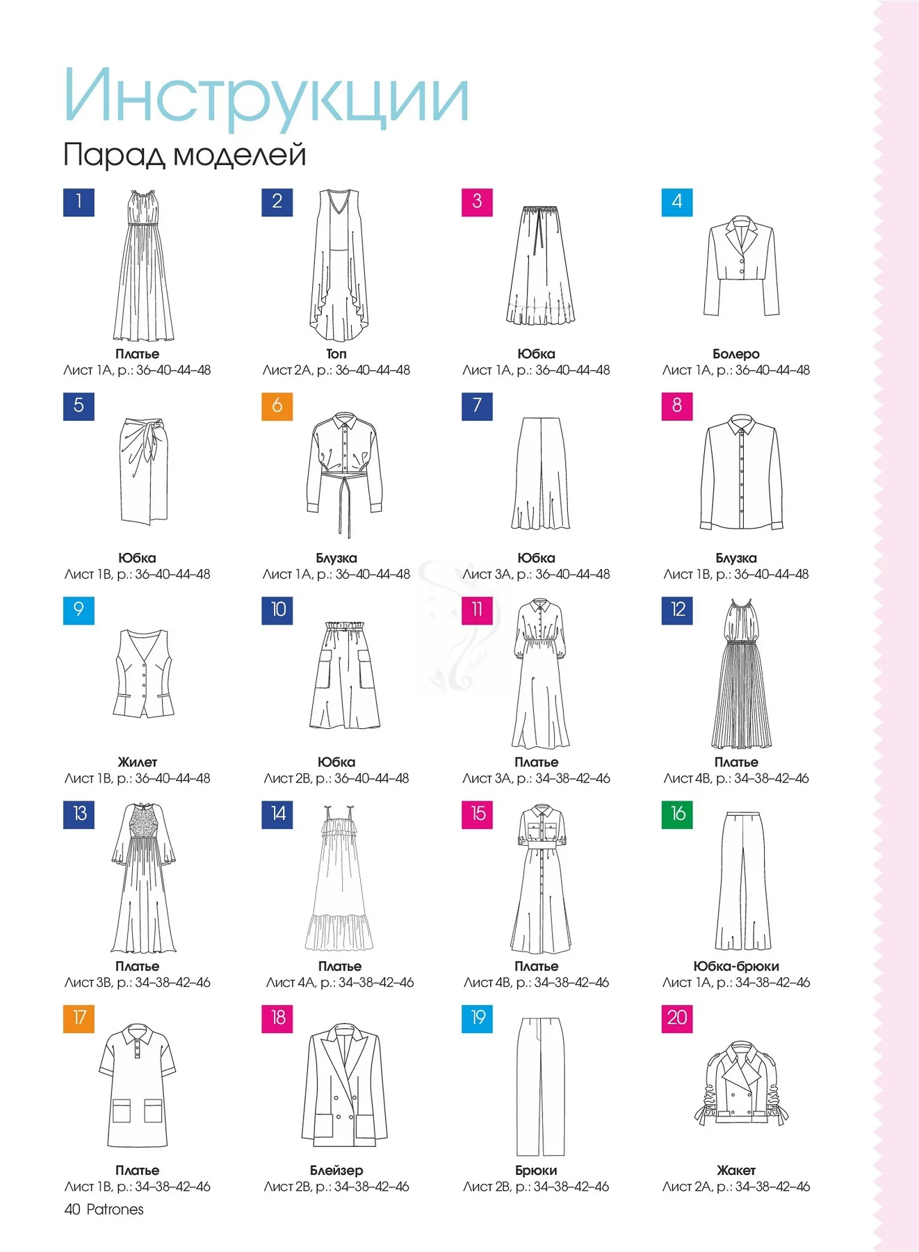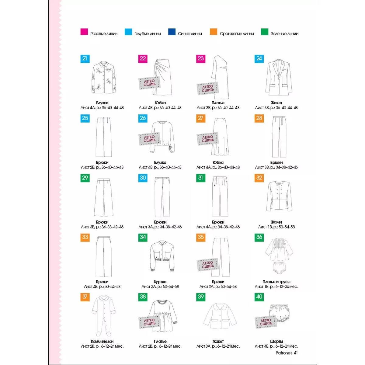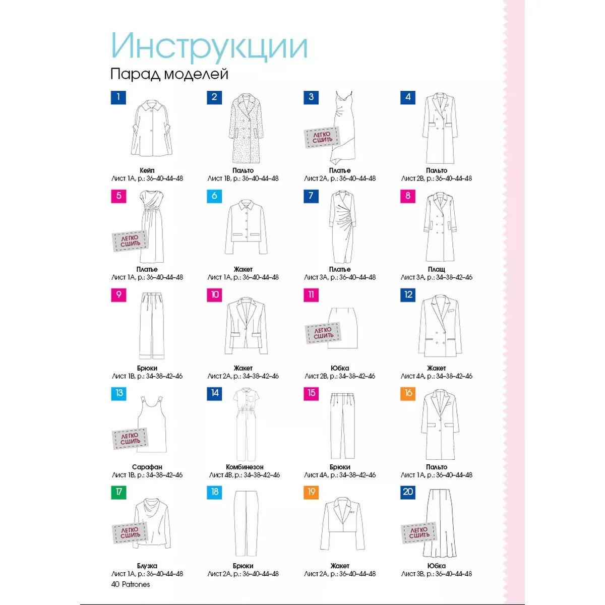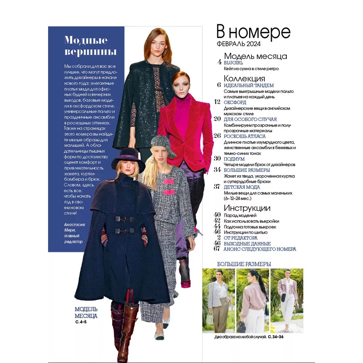 В каждом номере – около 40 женских моделей широкого размерного ряда, предназначенные для работы, праздничных выходов, отдыха и путешествий, а также модели для детей. Журнал содержит подробные инструкции по шитью и выкройки, обеспечивающие отличную посадку на фигуру.