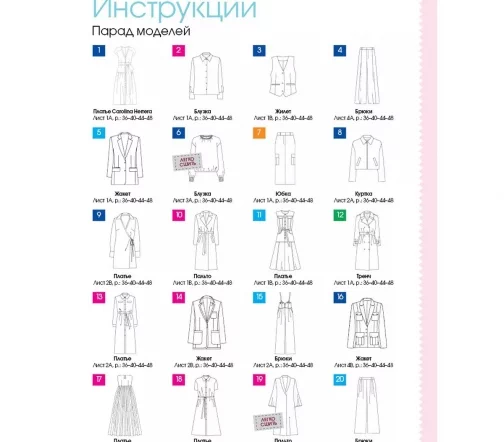 В каждом номере – около 40 женских моделей широкого размерного ряда, предназначенные для работы, праздничных выходов, отдыха и путешествий, а также модели для детей. Журнал содержит подробные инструкции по шитью и выкройки, обеспечивающие отличную посадку на фигуру.