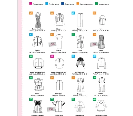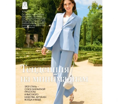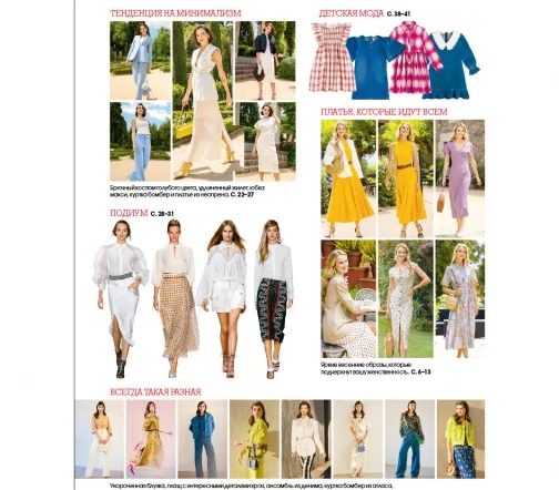 В каждом номере – около 40 женских моделей широкого размерного ряда, предназначенные для работы, праздничных выходов, отдыха и путешествий, а также модели для детей. Журнал содержит подробные инструкции по шитью и выкройки, обеспечивающие отличную посадку на фигуру.