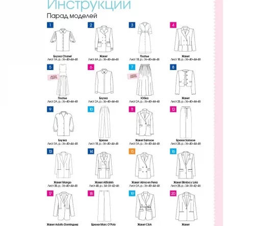 В каждом номере – около 40 женских моделей широкого размерного ряда, предназначенные для работы, праздничных выходов, отдыха и путешествий, а также модели для детей. Журнал содержит подробные инструкции по шитью и выкройки, обеспечивающие отличную посадку на фигуру.