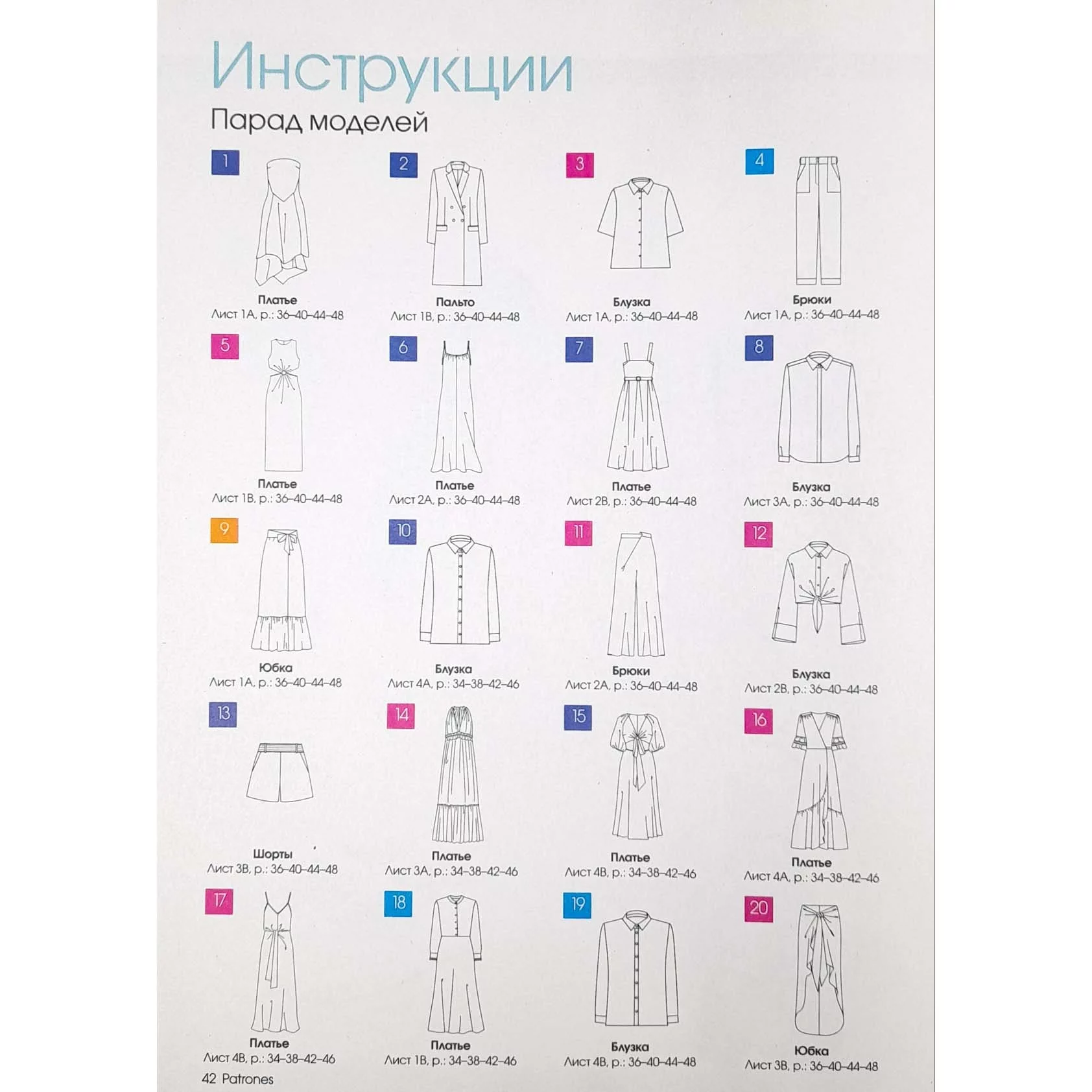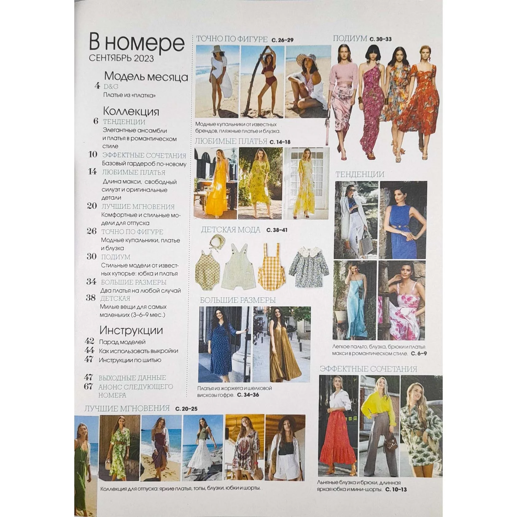 В каждом номере – около 40 женских моделей широкого размерного ряда, предназначенные для работы, праздничных выходов, отдыха и путешествий, а также модели для детей. Журнал содержит подробные инструкции по шитью и выкройки, обеспечивающие отличную посадку на фигуру.