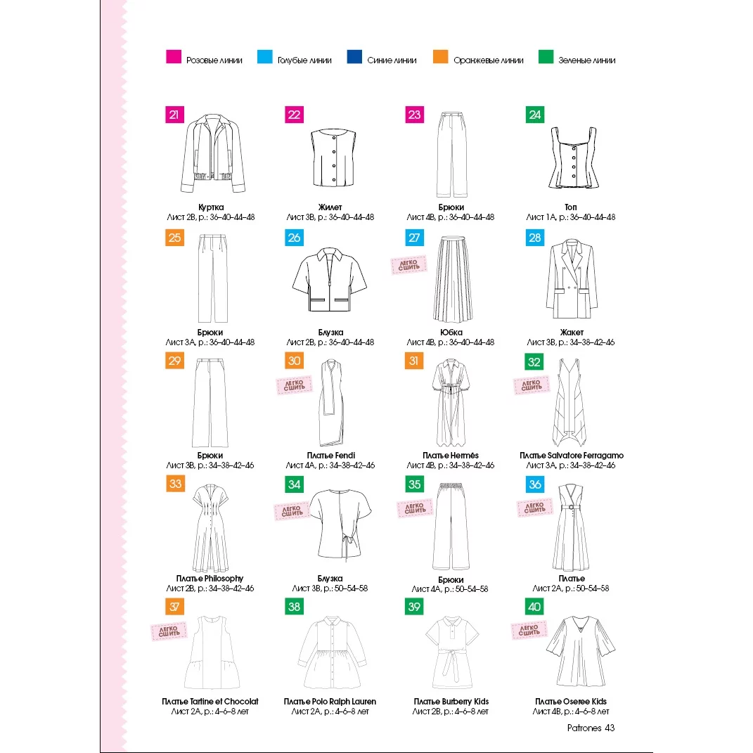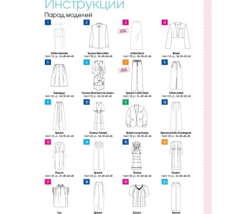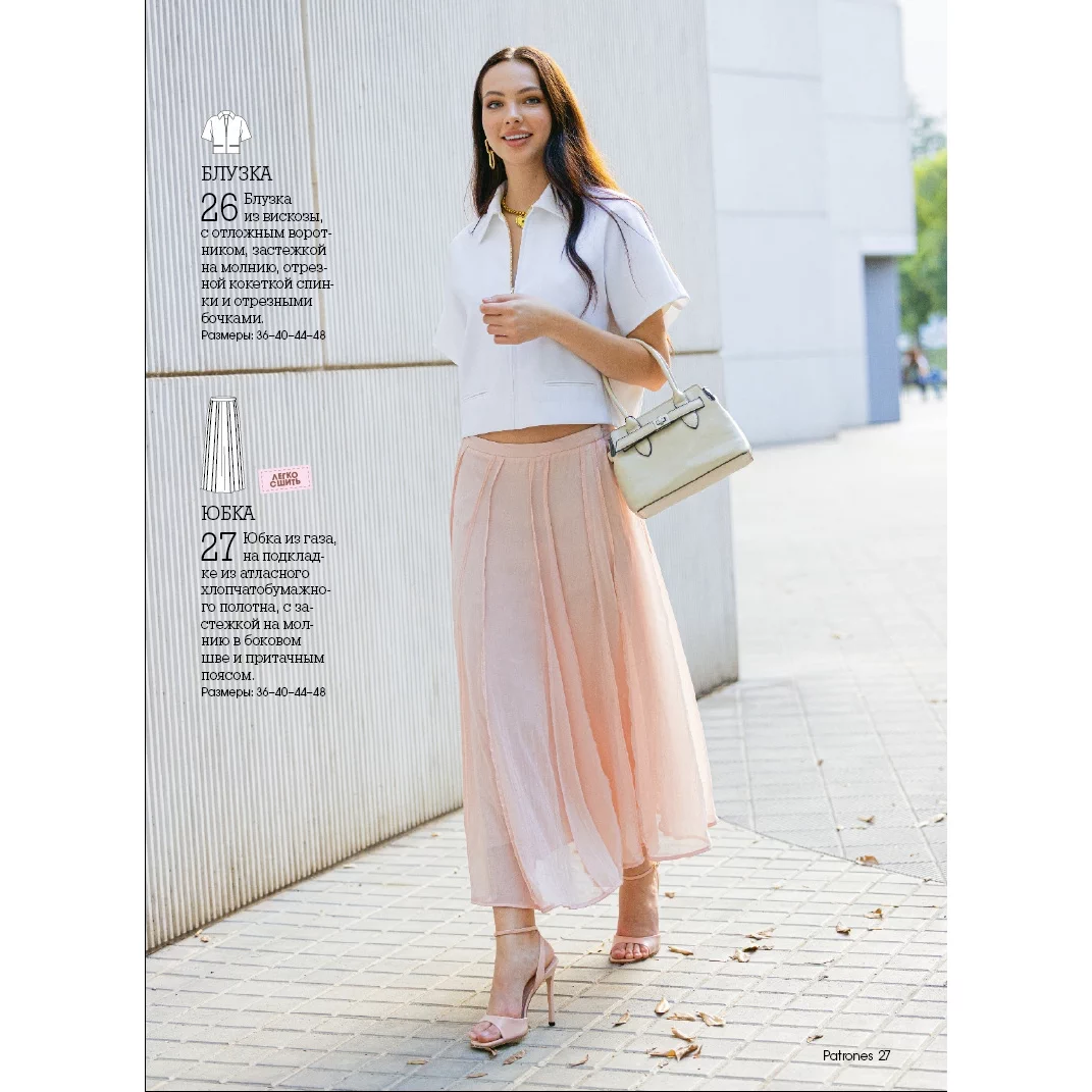 В каждом номере – около 40 женских моделей широкого размерного ряда, предназначенные для работы, праздничных выходов, отдыха и путешествий, а также модели для детей. Журнал содержит подробные инструкции по шитью и выкройки, обеспечивающие отличную посадку на фигуру.