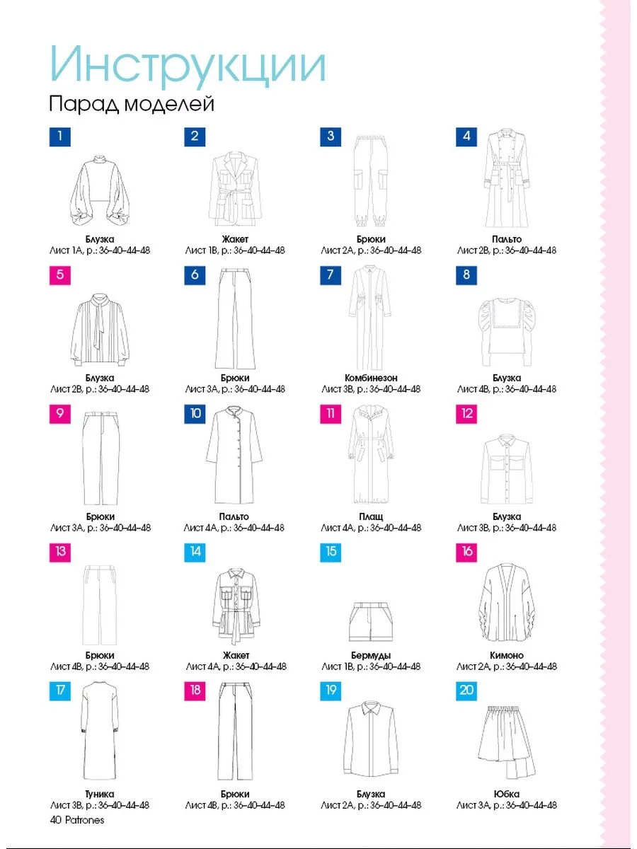 В каждом номере – около 40 женских моделей широкого размерного ряда, предназначенные для работы, праздничных выходов, отдыха и путешествий, а также модели для детей. Журнал содержит подробные инструкции по шитью и выкройки, обеспечивающие отличную посадку на фигуру.