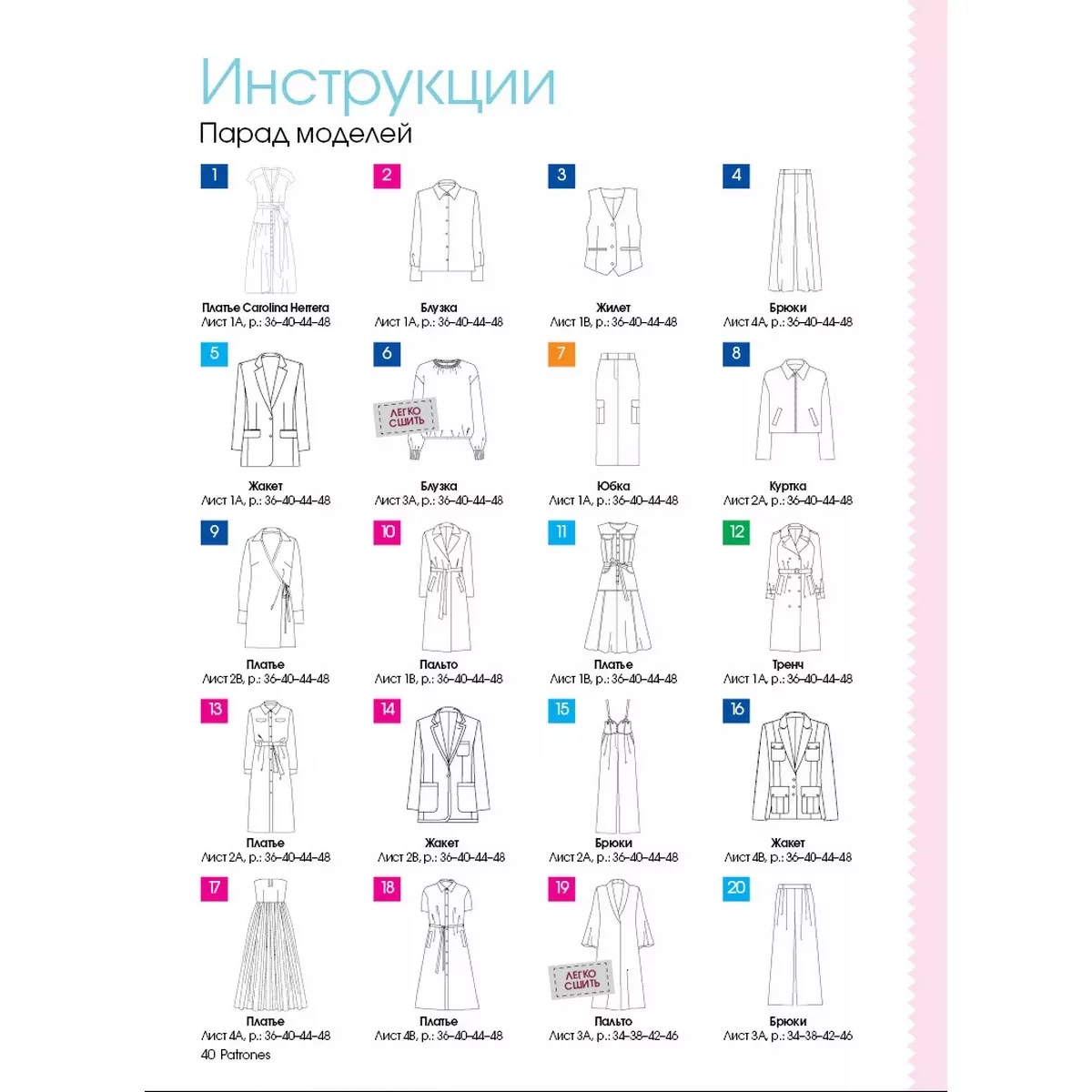 В каждом номере – около 40 женских моделей широкого размерного ряда, предназначенные для работы, праздничных выходов, отдыха и путешествий, а также модели для детей. Журнал содержит подробные инструкции по шитью и выкройки, обеспечивающие отличную посадку на фигуру.