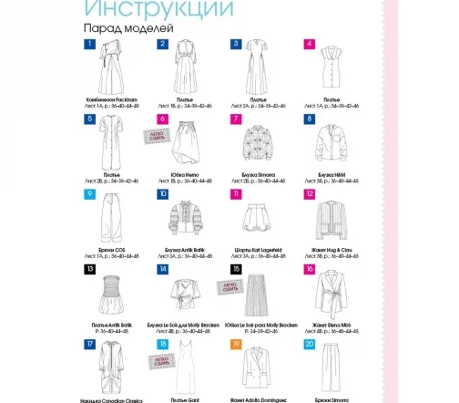 В каждом номере – около 40 женских моделей широкого размерного ряда, предназначенные для работы, праздничных выходов, отдыха и путешествий, а также модели для детей. Журнал содержит подробные инструкции по шитью и выкройки, обеспечивающие отличную посадку на фигуру.