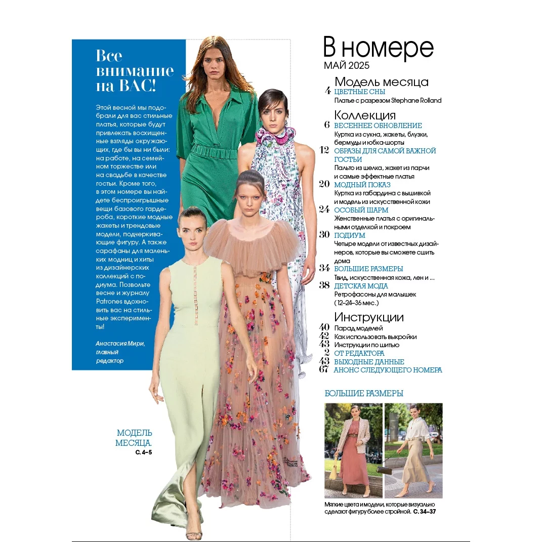 Журнал Patrones испанского издательства RBA Revistas хорошо известен любителям шитья как в Европе, так и в нашей стране. Содержит подробные инструкции по шитью и выкройки, обеспечивающие отличную посадку на фигуру.