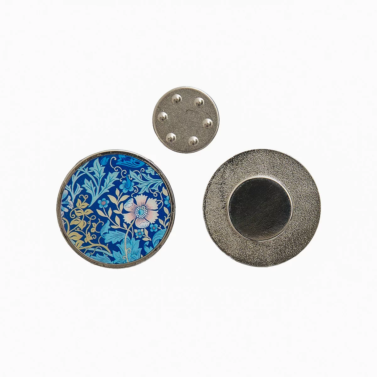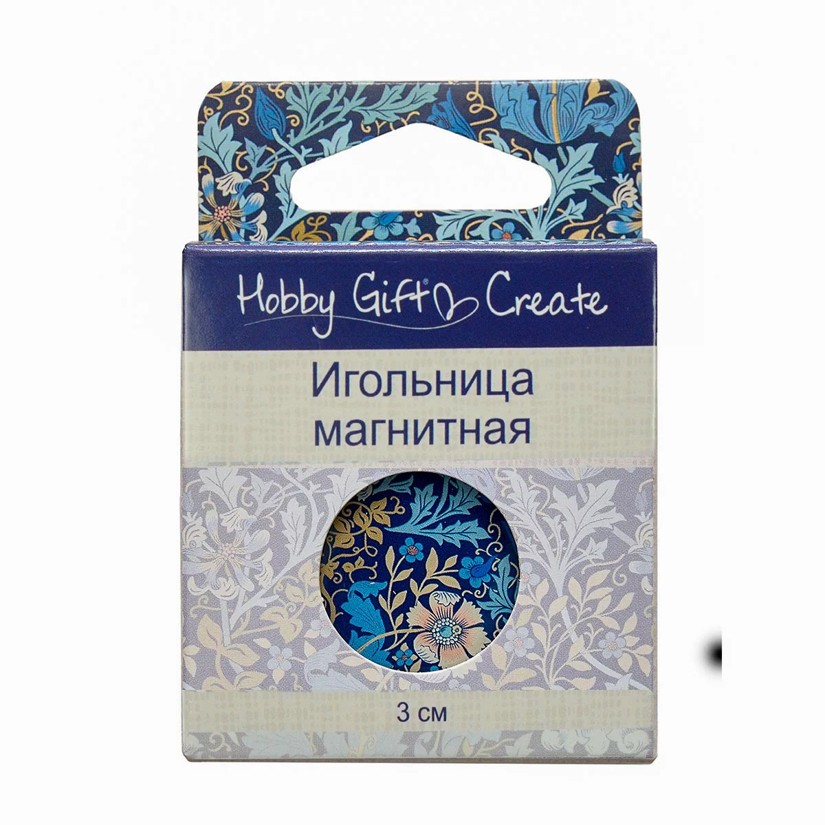 Игольница магнитная помогает удерживать ваши иглы на месте во время вышивания, шитья, стежки рукоделия. Поместите декоративную сторону с магнитом поверх ткани и поместите магнитный диск под ткань. Дизайн магнитной иголницы - растительный в синих тонах. Размер игольницы: 3 x 5 мм.