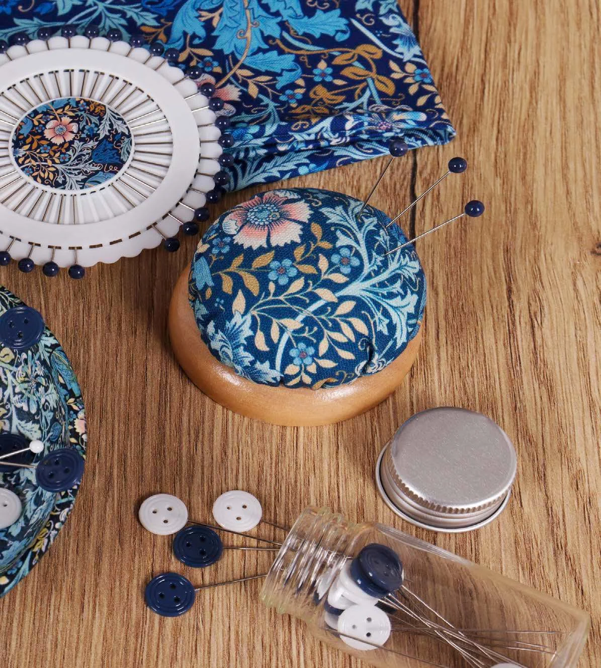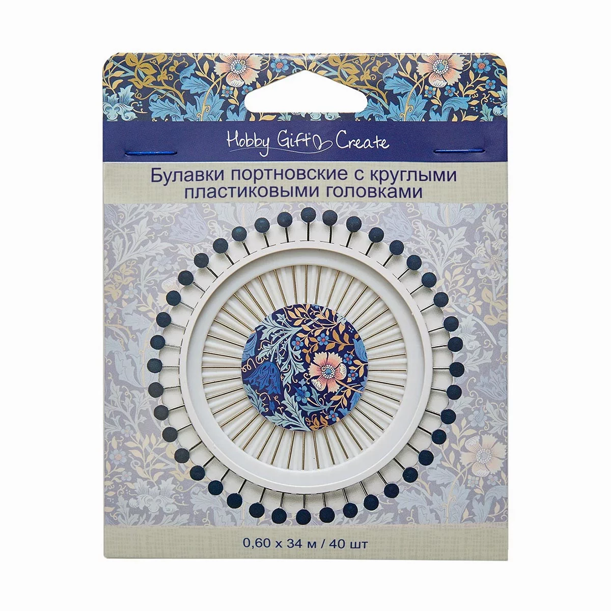 Булавки из никелированной стали с синими пластиковыми головками. Размер булавки 0.60 x 34 мм, в наборе 40 шт. Аккуратно размещаются в традиционном булавочном колесе "ромашка". Больше никакого беспорядка и потерянных булавок!