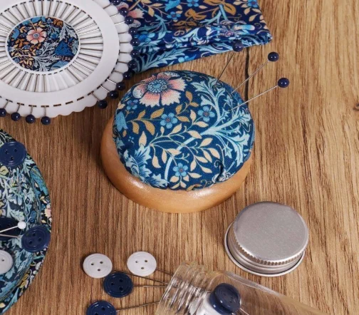 Игольница-подушечка на деревянной основе. Хлопковая поверхность. Маленькая и удобная форма для швейных работ. Аккуратно храните булавки и поддерживайте порядок на рабочем месте. Размер игольницы: диаметр 7 x 4 см.