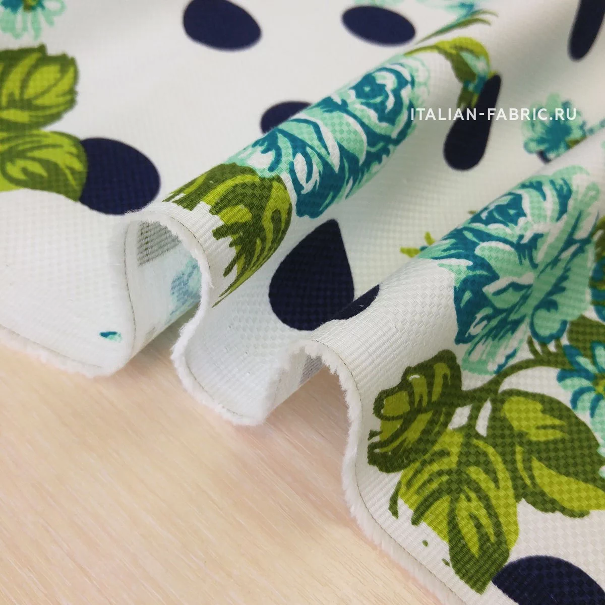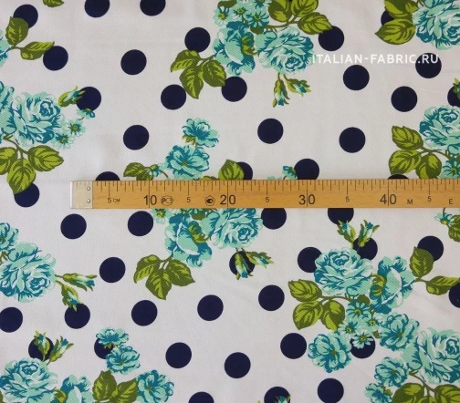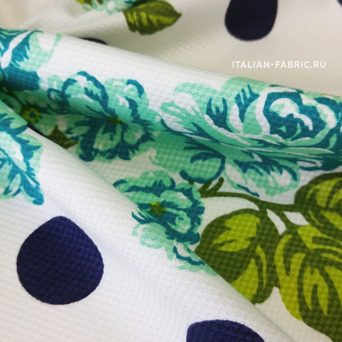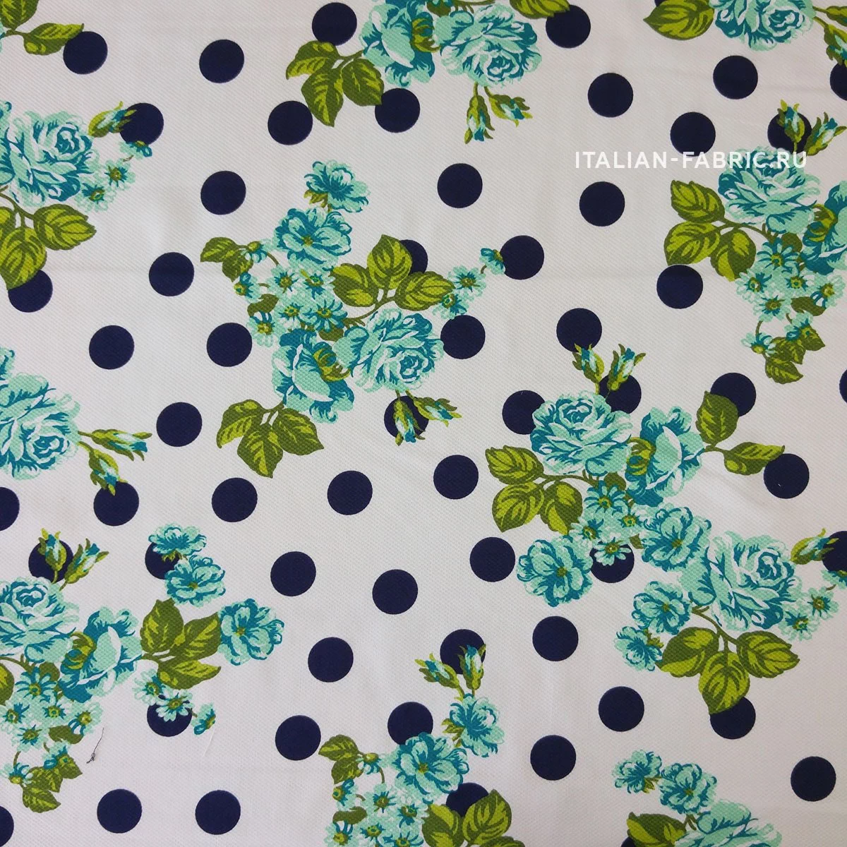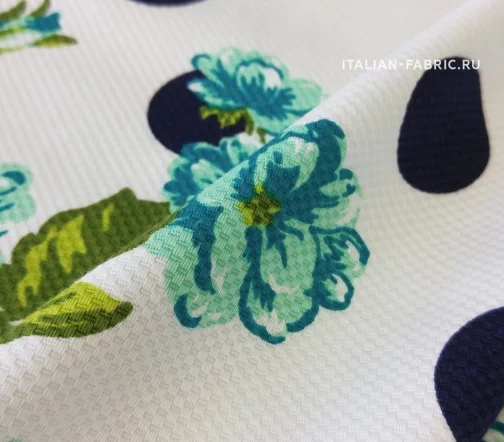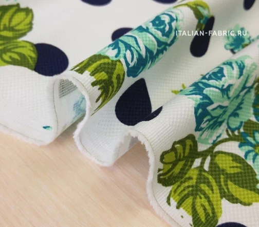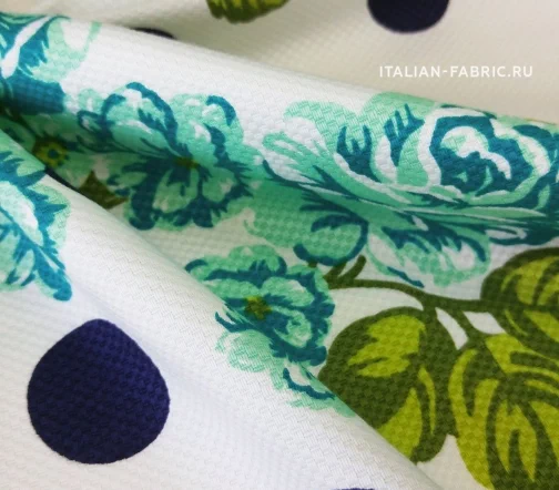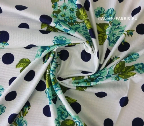 Основной фон - белый. Горохи - темно-синие. Красота и грация - таким будет девиз изделий из этого хлопка-пике.
