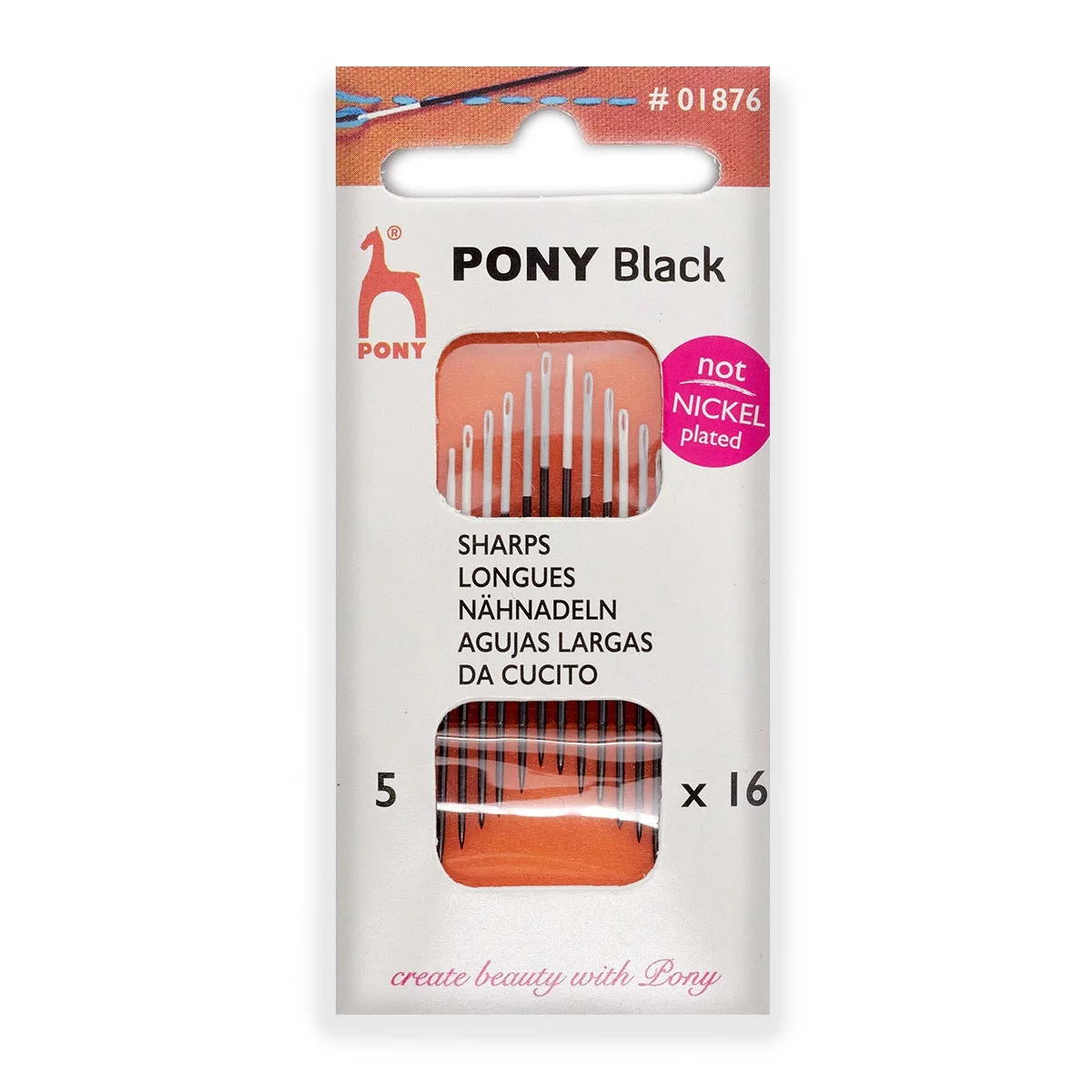Иглы PONY BLACK Sharps предназначены для шитья, мелкого ремонта текстильных изделий, вышивания в различных техниках. Рабочая часть иглы имеет черную неотражающую поверхность, которая хорошо видна на ярких и белых материалах и приятна для глаз. Благодаря контрастному белому ушку вдевать нитку в иглу еще проще. Иглы серии PONY Black не вызывают аллергии, поскольку при их производстве не используются технологии никелирования. Изготовлены из высокоуглеродистой оксидированной стали, устойчивой к коррозии. Прочные, гладкие и с идеальным острием – при правильном использовании такие иглы прослужат вам долго.