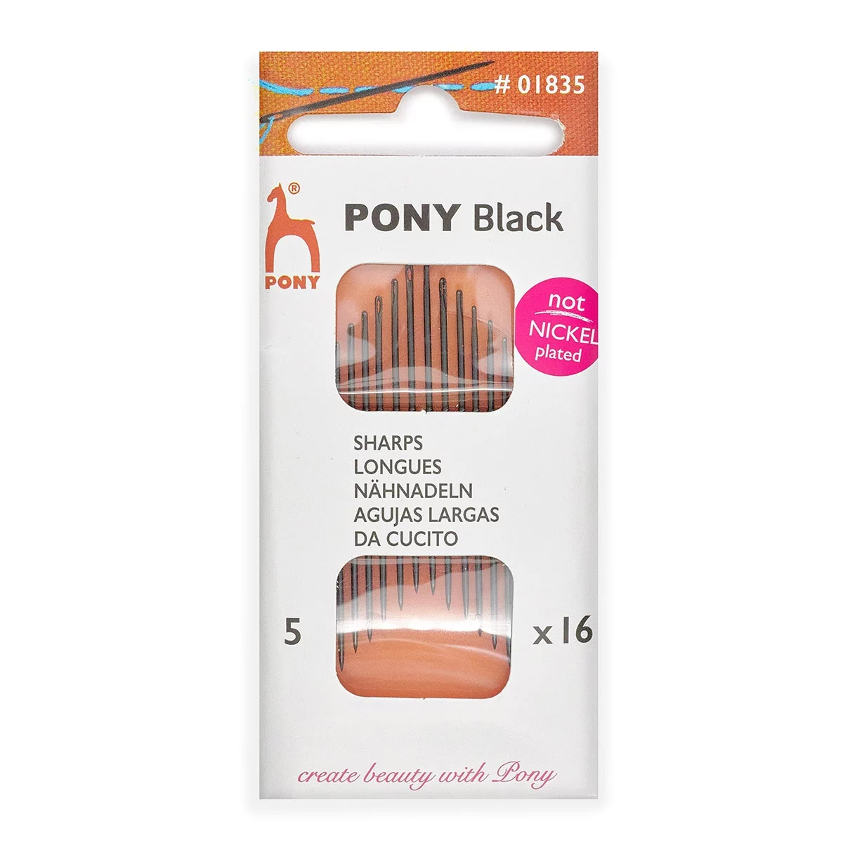 Иглы PONY BLACK Sharps предназначены для шитья, мелкого ремонта текстильных изделий, вышивания в различных техниках. Имеют полностью черную неотражающую поверхность, которая хорошо видна на ярких и белых материалах и приятна для глаз. Иглы серии PONY Black не вызывают аллергии, поскольку при их производстве не используются технологии никелирования. Изготовлены из высокоуглеродистой оксидированной стали, устойчивой к коррозии. Прочные, гладкие и с идеальным острием – при правильном использовании такие иглы прослужат вам долго.