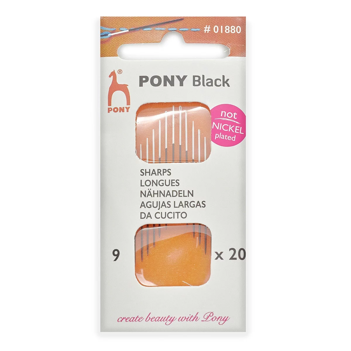 Иглы PONY BLACK Sharps предназначены для шитья, мелкого ремонта текстильных изделий, вышивания в различных техниках. Рабочая часть иглы имеет черную неотражающую поверхность, которая хорошо видна на ярких и белых материалах и приятна для глаз. Благодаря контрастному белому ушку вдевать нитку в иглу еще проще. Иглы серии PONY Black не вызывают аллергии, поскольку при их производстве не используются технологии никелирования. Изготовлены из высокоуглеродистой оксидированной стали, устойчивой к коррозии. Прочные, гладкие и с идеальным острием – при правильном использовании такие иглы прослужат вам долго.