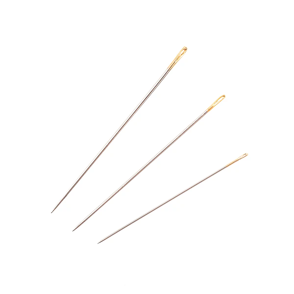 Изготовлены из высокоуглеродистой стали с хромированным покрытием, устойчивы к появлению коррозии. При правильном использовании такие иглы прослужат вам долго. В комплекте 16 остроконечных игл разного размера с простым ушком.