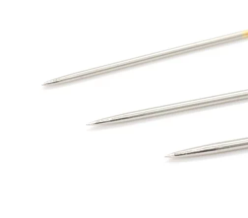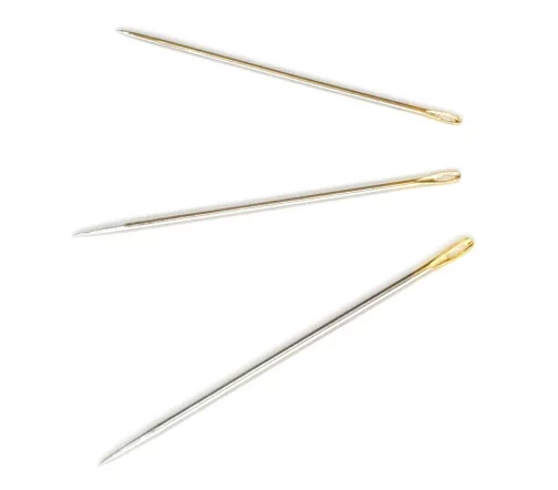 Изготовлены из высокоуглеродистой стали с хромированным покрытием, устойчивы к появлению коррозии. При правильном использовании такие иглы прослужат вам долго. В комплекте 16 остроконечных игл разного размера. Ушко иглы позолочено, поэтому вдевать в него нить удобно даже при ослабленном зрении.