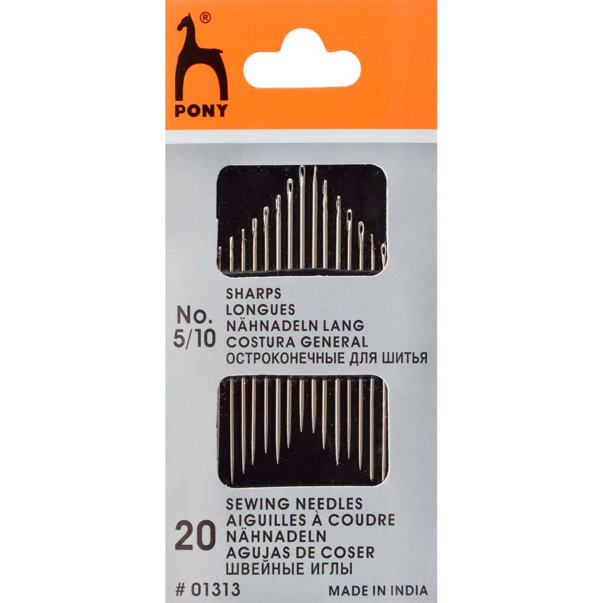 Комплект из 20 острых игл с простыми ушками подходит для любого вида ручного шитья, включая наметку, ремонт текстиля или вышивку.