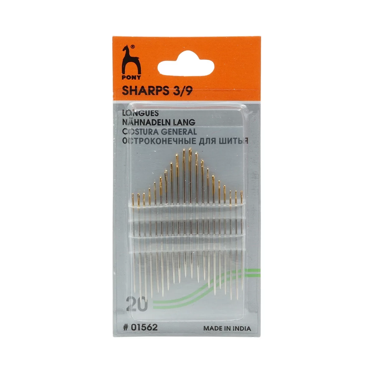Комплект из 20 острых игл PONY с простыми ушками подходит для любого вида ручного шитья, включая наметку, ремонт текстиля или вышивку.