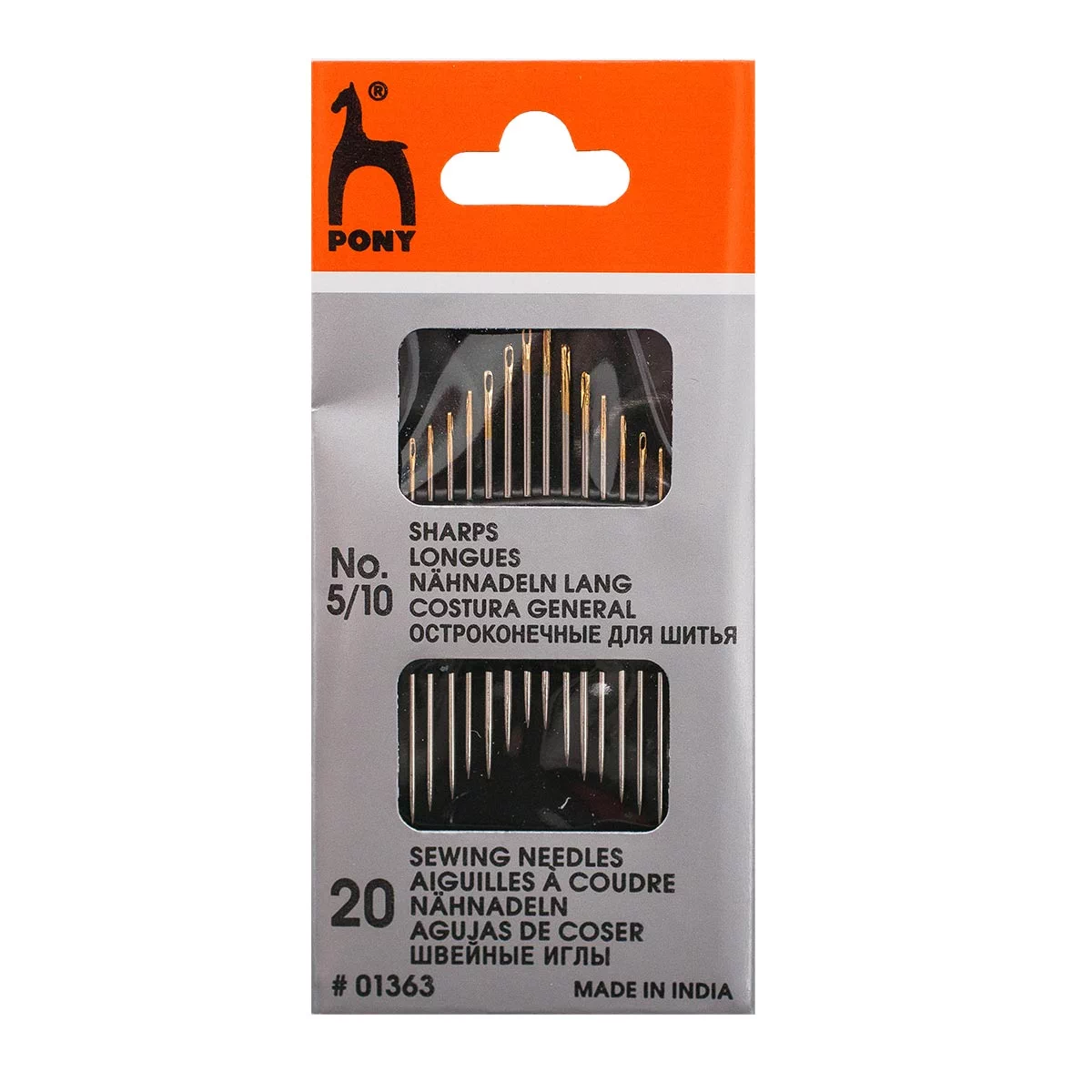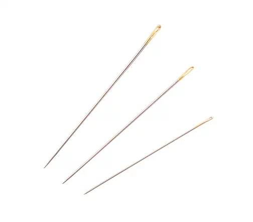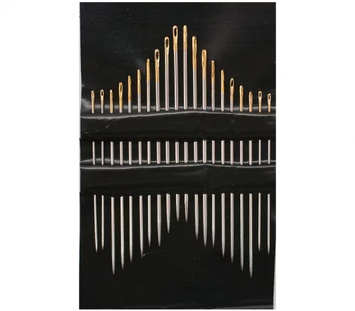 Комплект из 20 острых игл подходит для любого вида ручного шитья, включая наметку, ремонт текстиля или вышивку. Ушко иглы позолочено, поэтому вдевать в него нить удобно даже при ослабленном зрении.