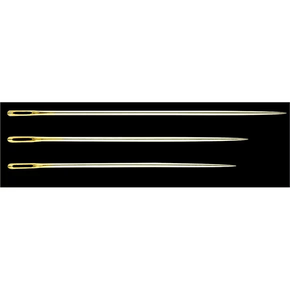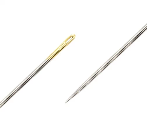 Комплект из 10 тонких острых игл с позолоченными ушками идеально подойдет для наметочных или мелких ремонтных работ.