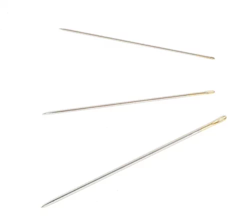 Комплект из 10 тонких острых игл идеально подойдет для наметочных или мелких ремонтных работ. Ушко каждой иглы позолочено, поэтому вдевать в него нить удобно даже при ослабленном зрении.