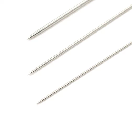 Изготовлены из высокоуглеродистой стали с хромированным покрытием, устойчивы к появлению коррозии. При правильном использовании такие иглы прослужат вам долго.