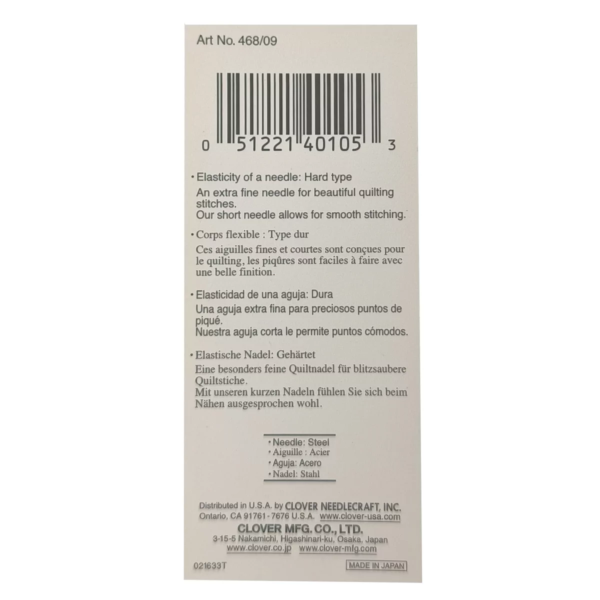 468/09 Иглы для квилтинга, № 9, 15 шт., Clover