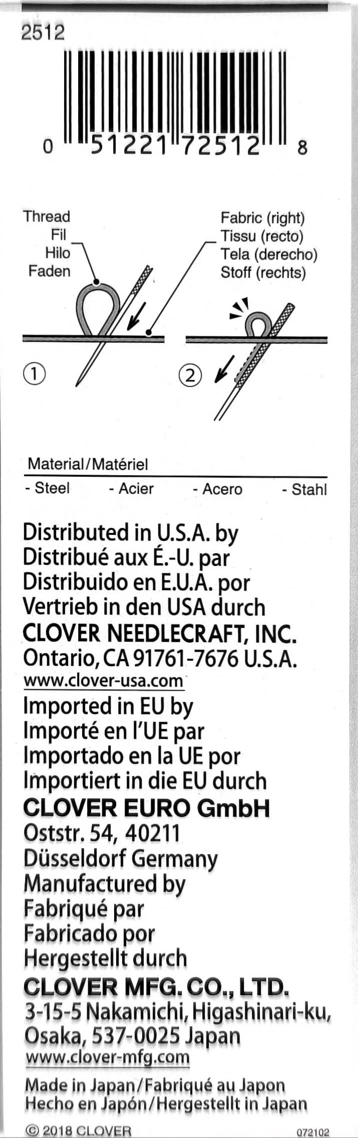 2512 Игла для поднятия петель, 2 шт., Clover