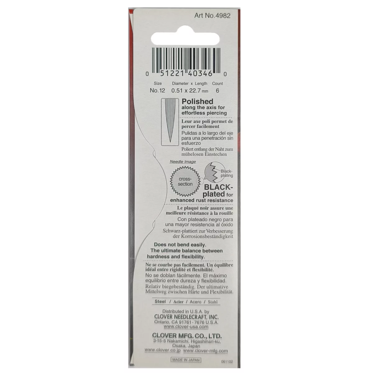 4982 Иглы черно-золотые для квилтинга, № 12, 6 шт., Clover