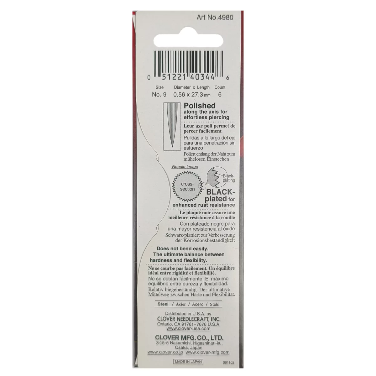 4980 Иглы черно-золотые для квилтинга, № 9, 6 шт., Clover