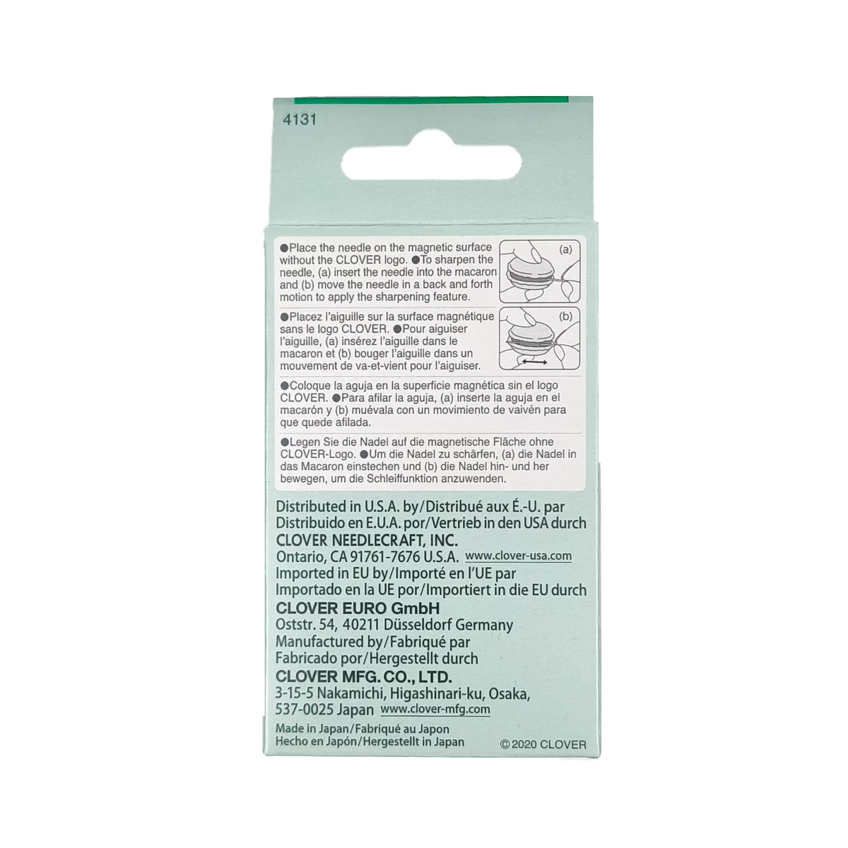 4131 Магнитная игольница-точилка для игл "Макарун", 36 х 20 мм, цвет фисташковый, Clover